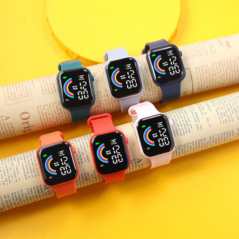 Новые C1-6 кнопки светодиодные электронные часы для мужчин и женщин студентов персонализированный Радужный цветной экран маленькие квадратные спортивные часы для отдыха