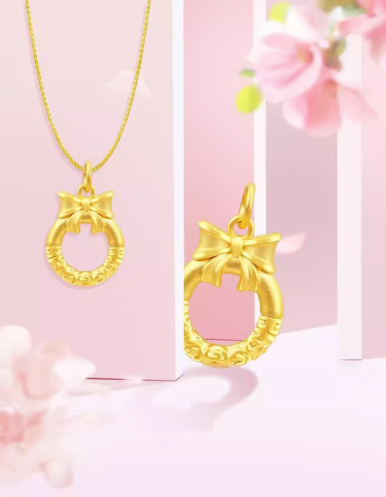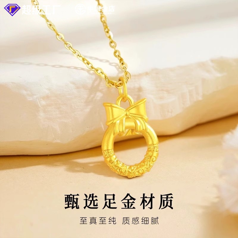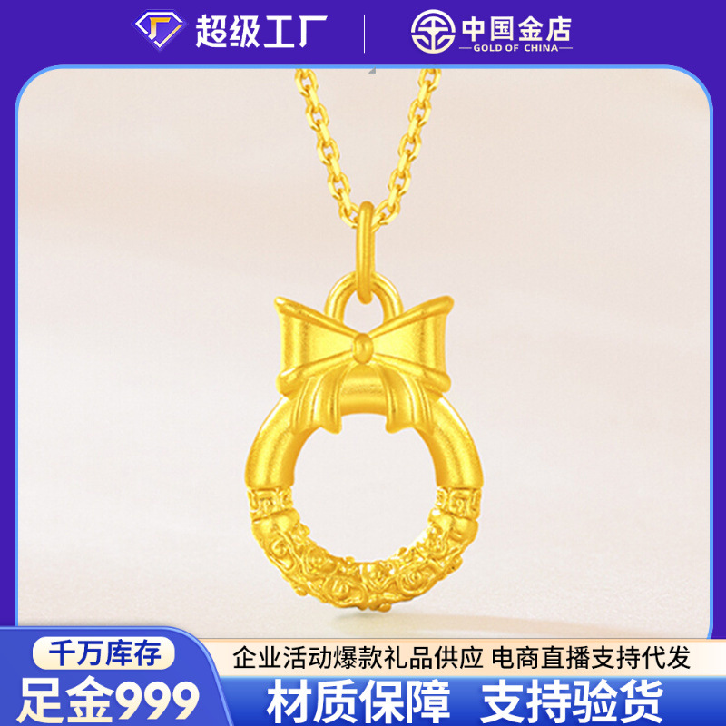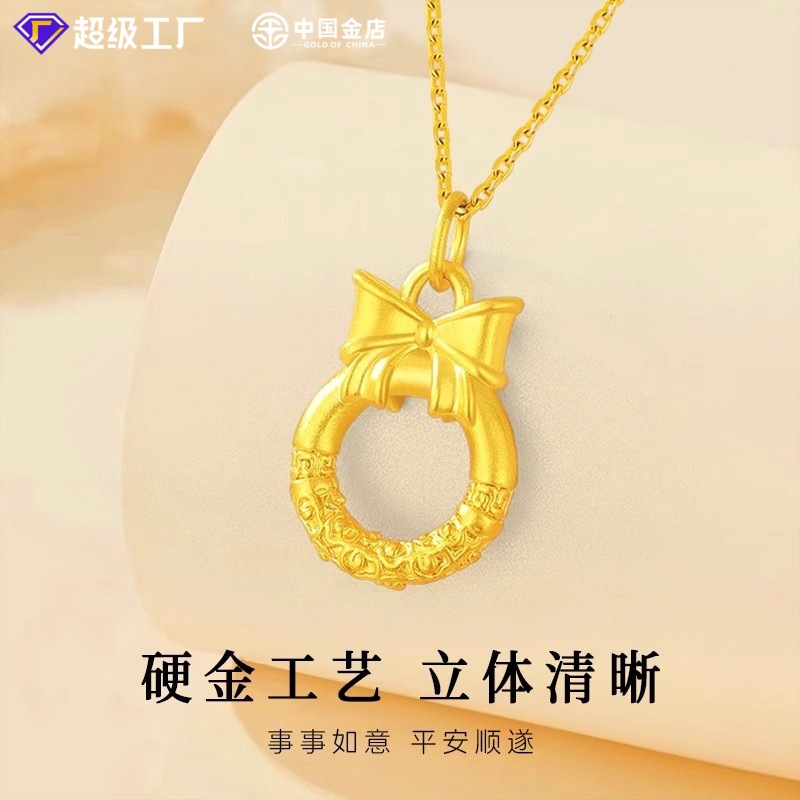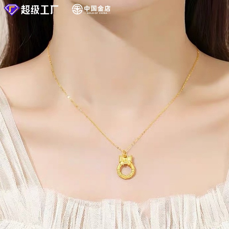 Китай Золотой магазин золото 999 оптом золотой кулон лук концентрический круг 3D ТВЕРДОЕ ЗОЛОТО безопасная пряжка Ожерелье для подарков