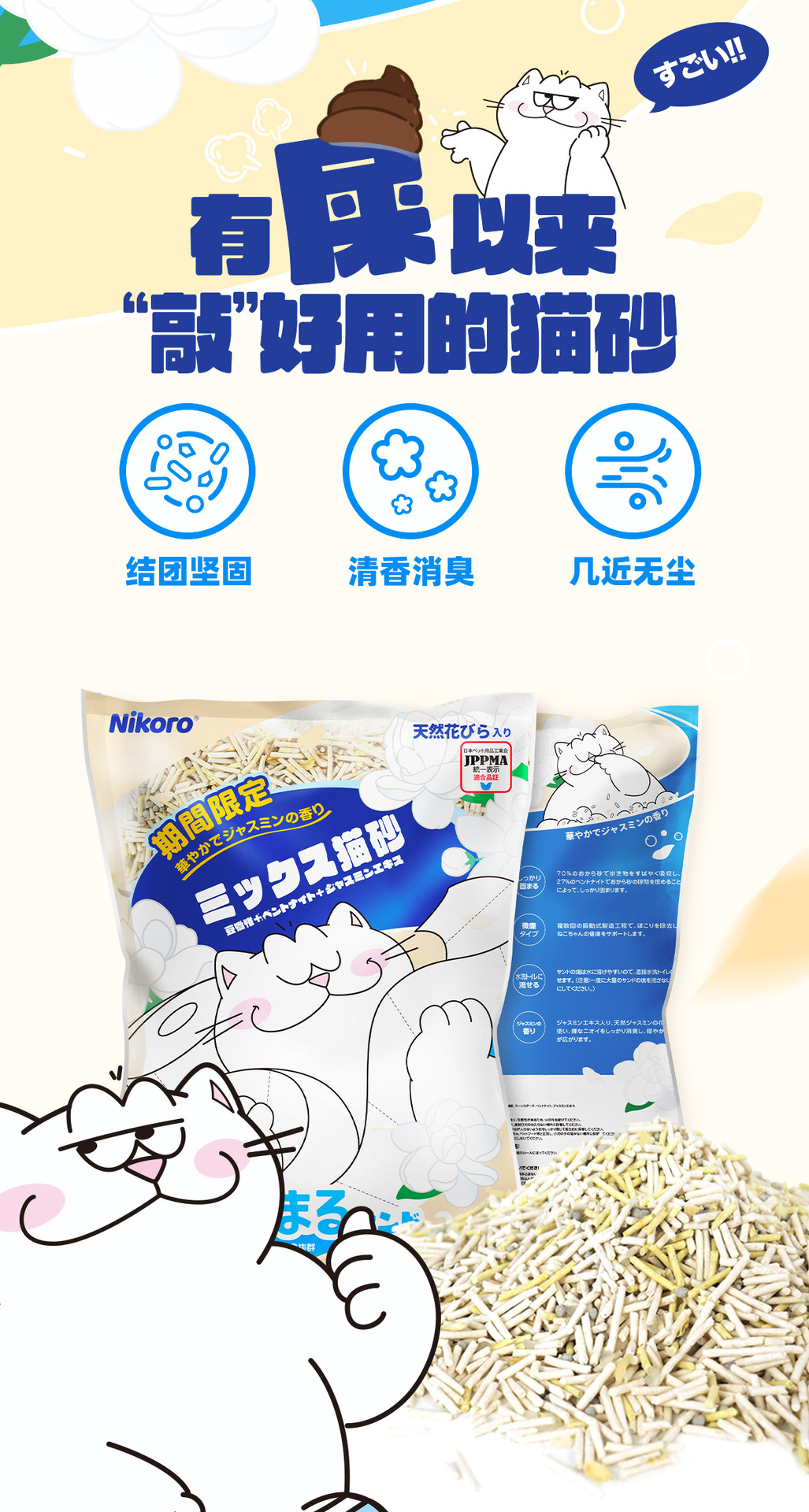 Наполнитель для кошачьего туалета Nicole, тофу, смешанный, 2,5 кг * 6 пакетов, комкующийся, дезодорирующий, зоотовары, целая коробка