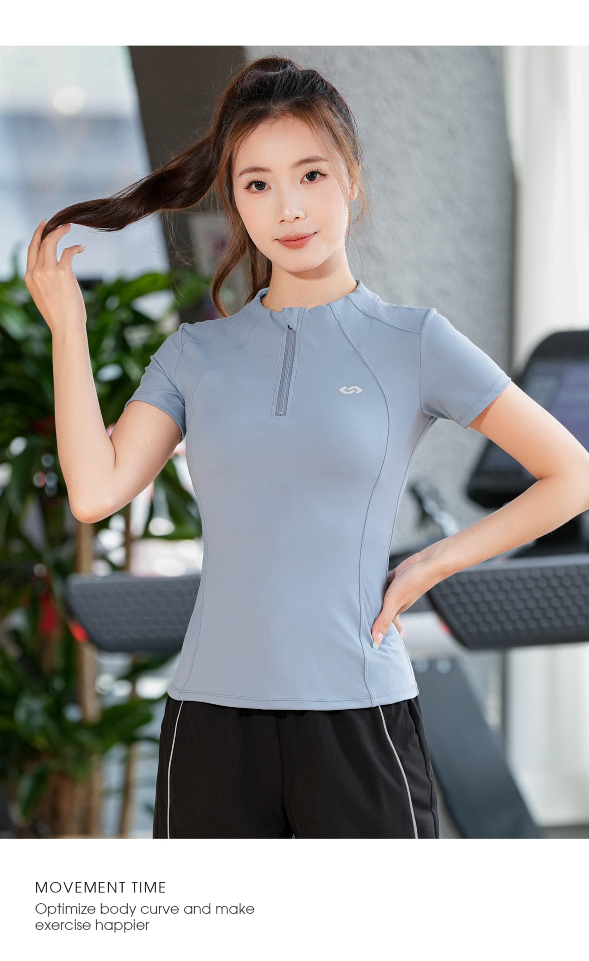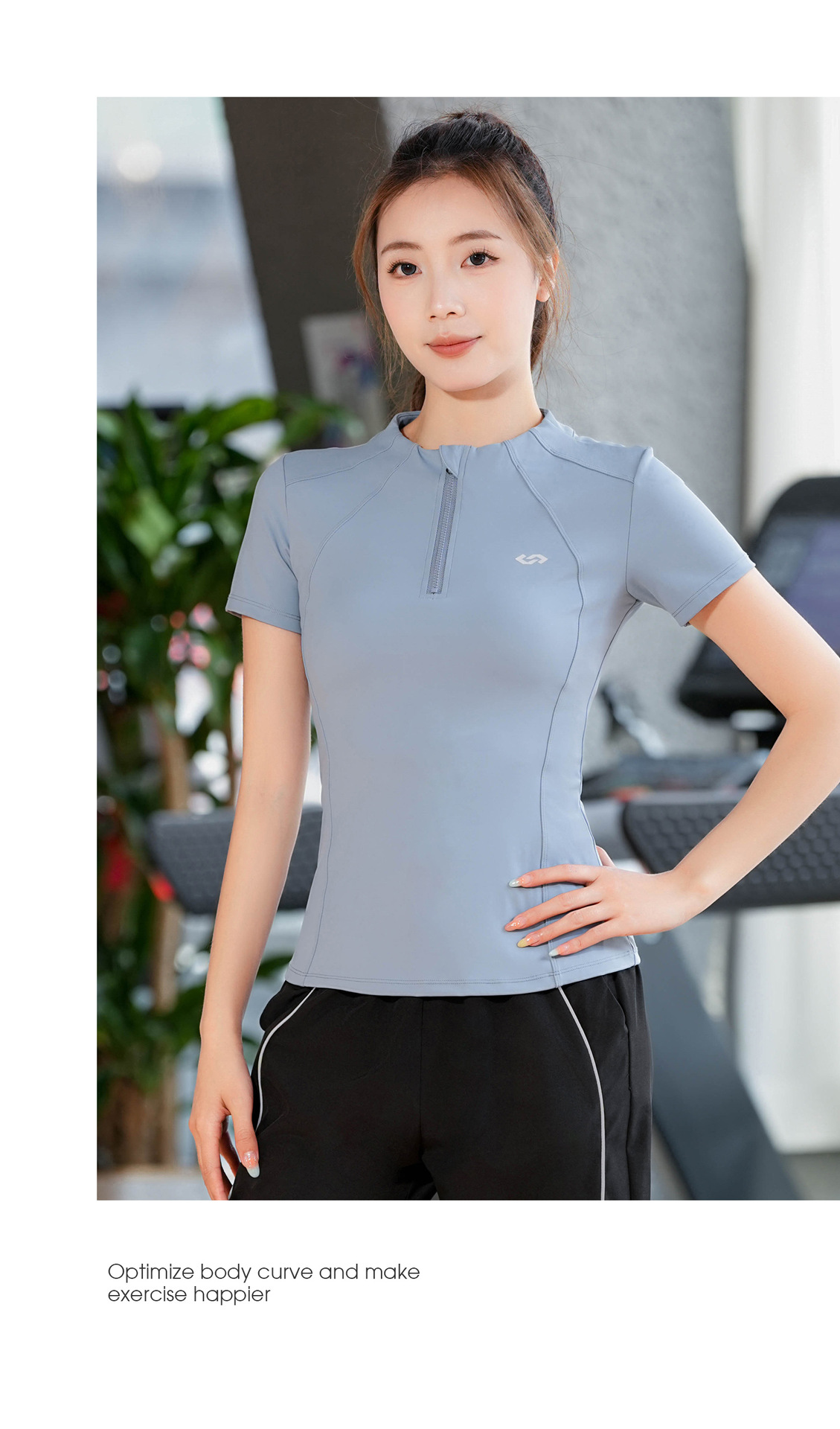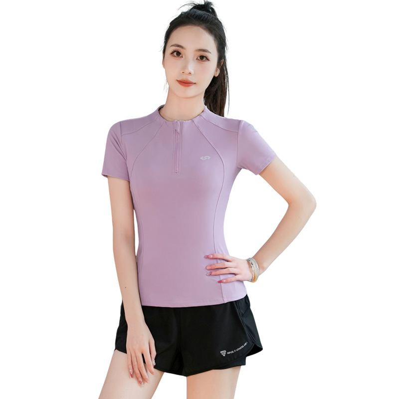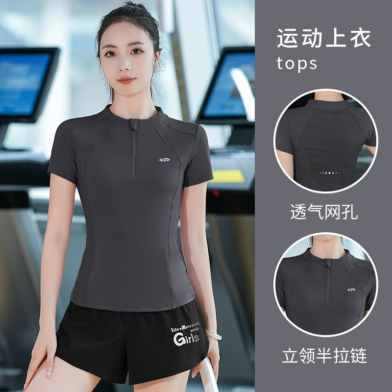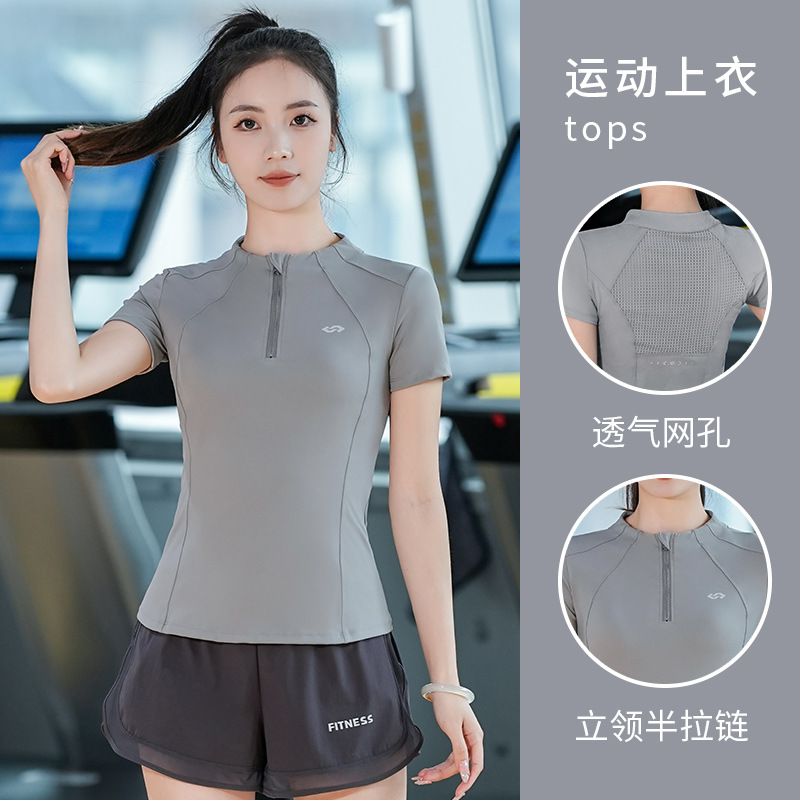 2025 летняя одежда для йоги с короткими рукавами летняя тонкая полузастежка-молния тренировочная одежда с высокой пулей бег фитнес спортивная одежда женская топ