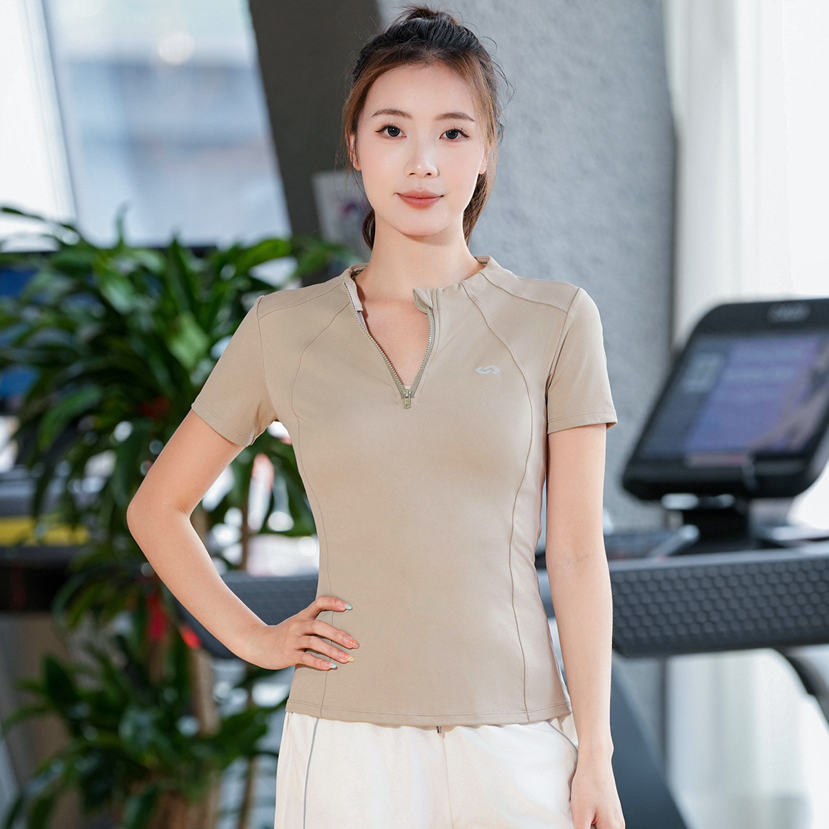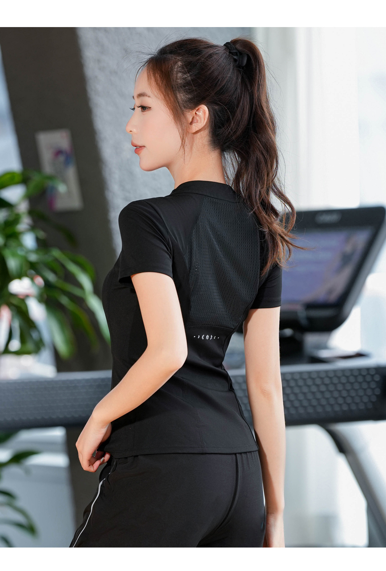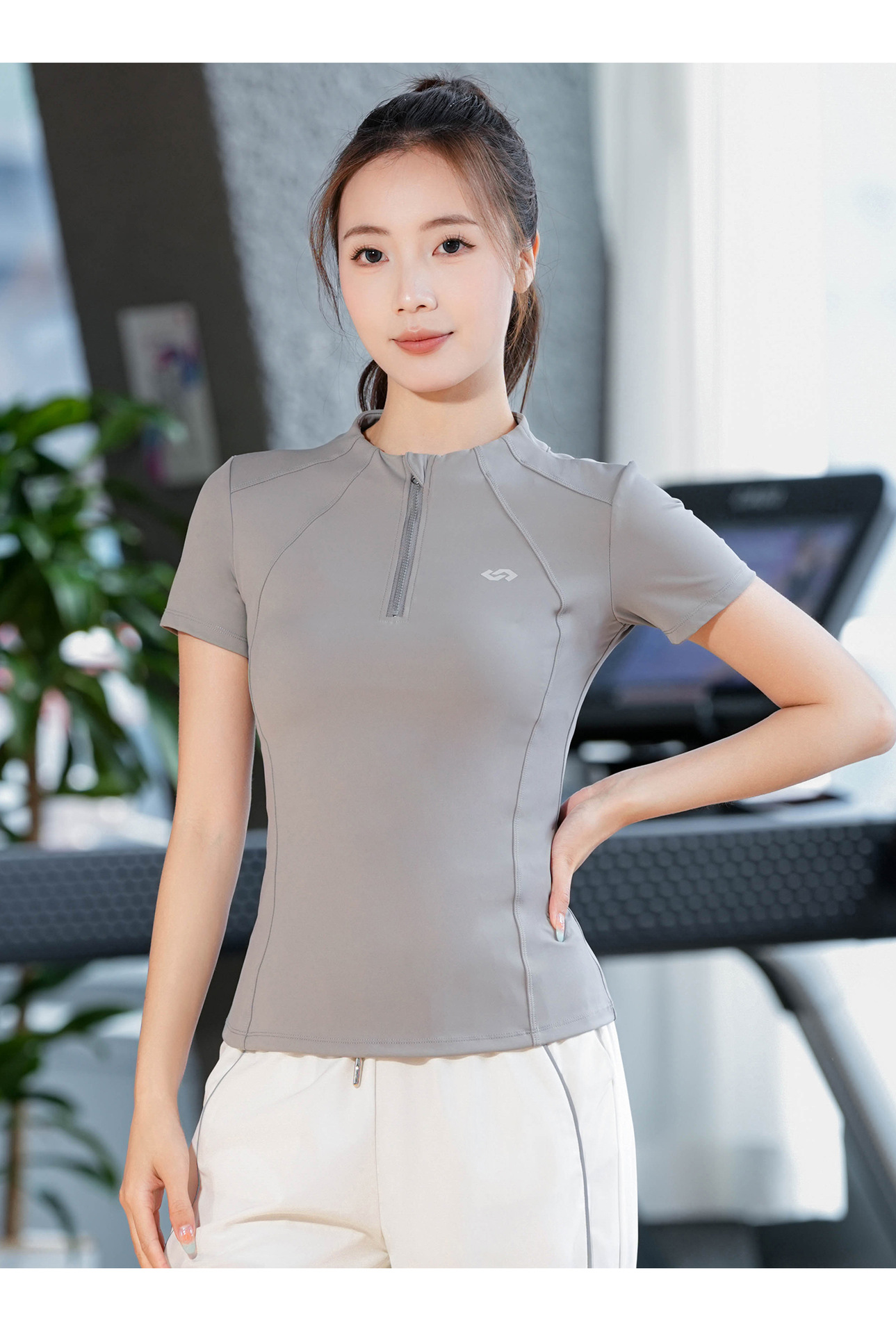 2025 летняя одежда для йоги с короткими рукавами летняя тонкая полузастежка-молния тренировочная одежда с высокой пулей бег фитнес спортивная одежда женская топ