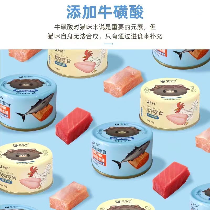 Резервуар для увлажнения тунца (24 банки в коробке); Консервные банки для увлажнения куриного бульона (24 банки в коробке); Шейк банка со вкусом курицы 85г/банка (24 банки в коробке); Шейк-банка - тунец 85г/банка (24 банки в коробке); Консервные банки с тунцом с рулонным хвостом (24 банки в коробке); Консервные банки с куриной стержневой пищей с вьющимся хвостом (24 банки в коробке)