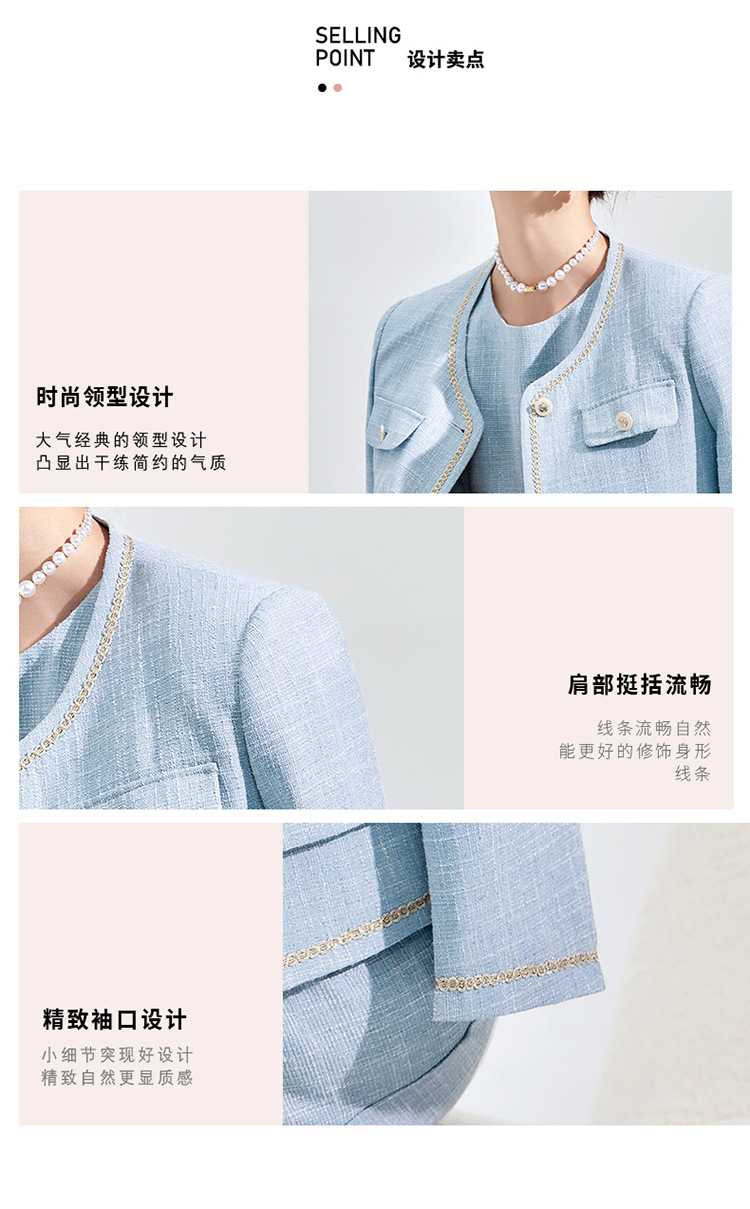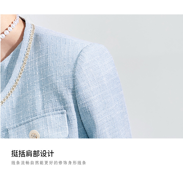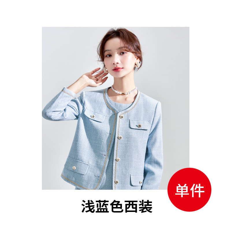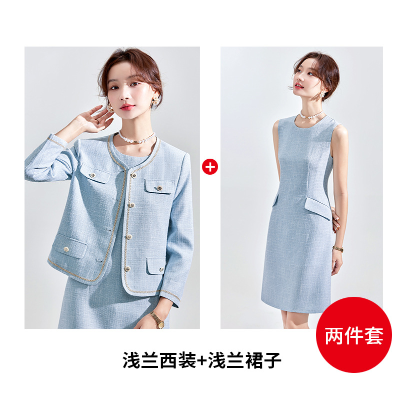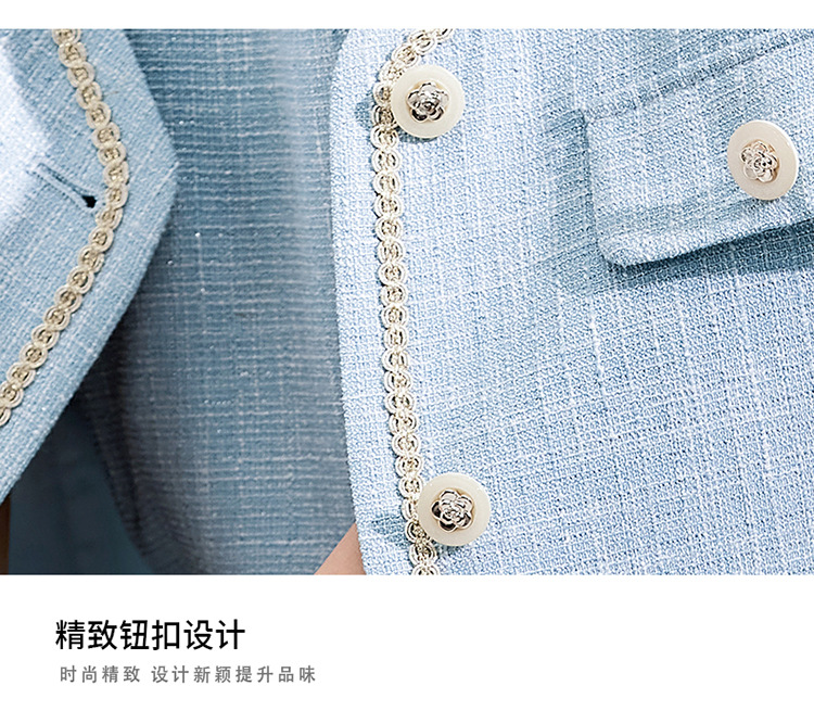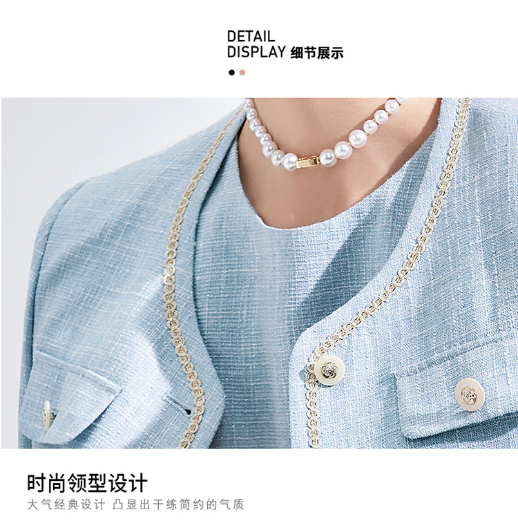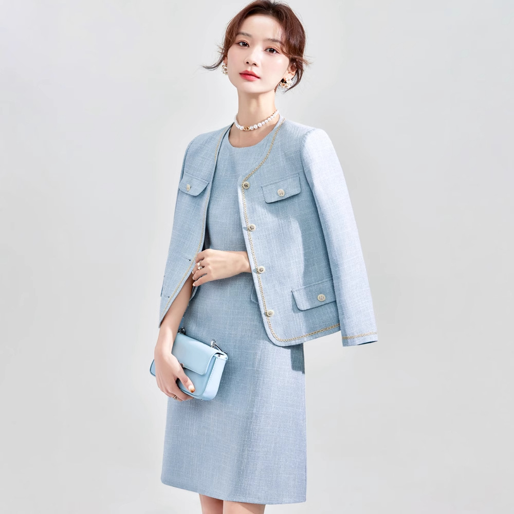Высококачественный синий костюм, платье на весну и осень 2023, новый стиль, ароматный стиль, короткий костюм в западном стиле с веером богини Mingyuan