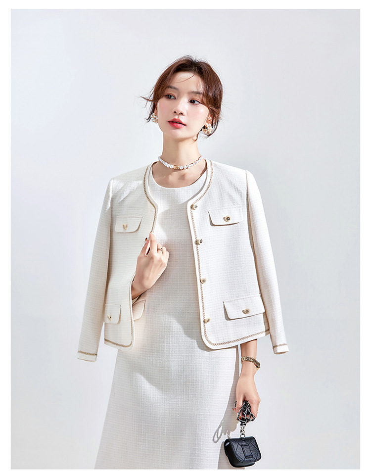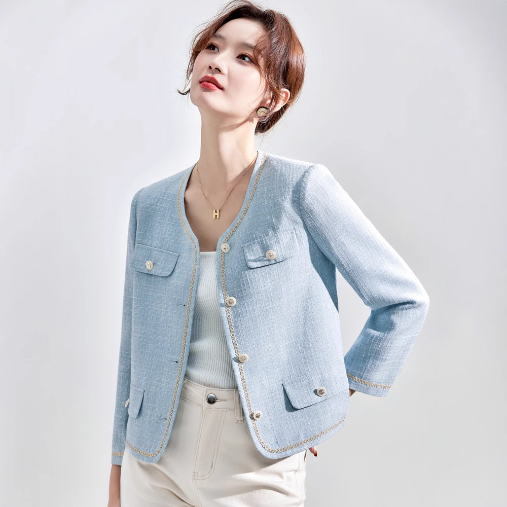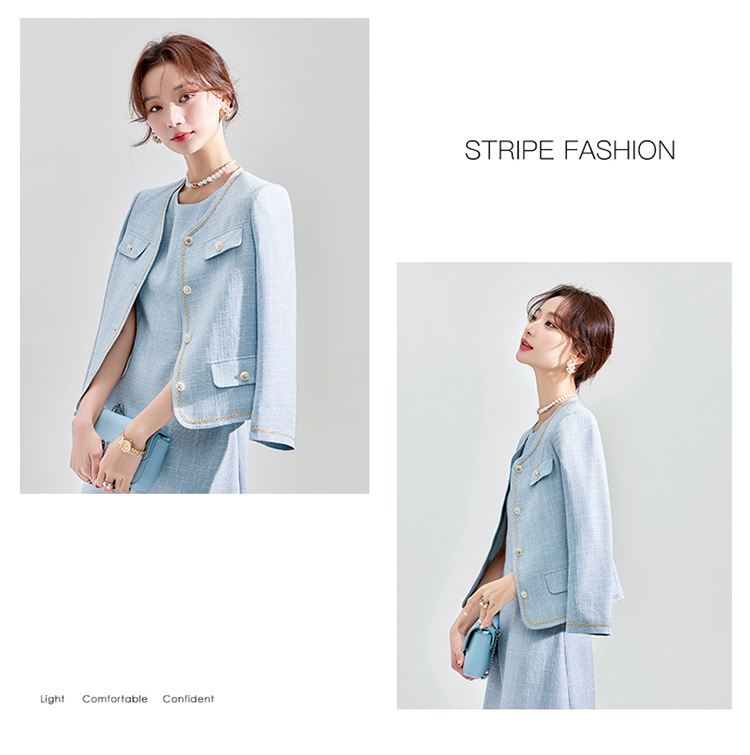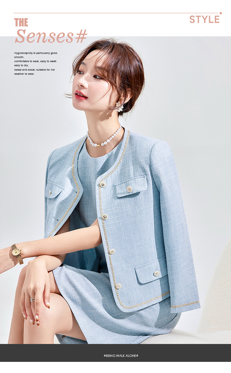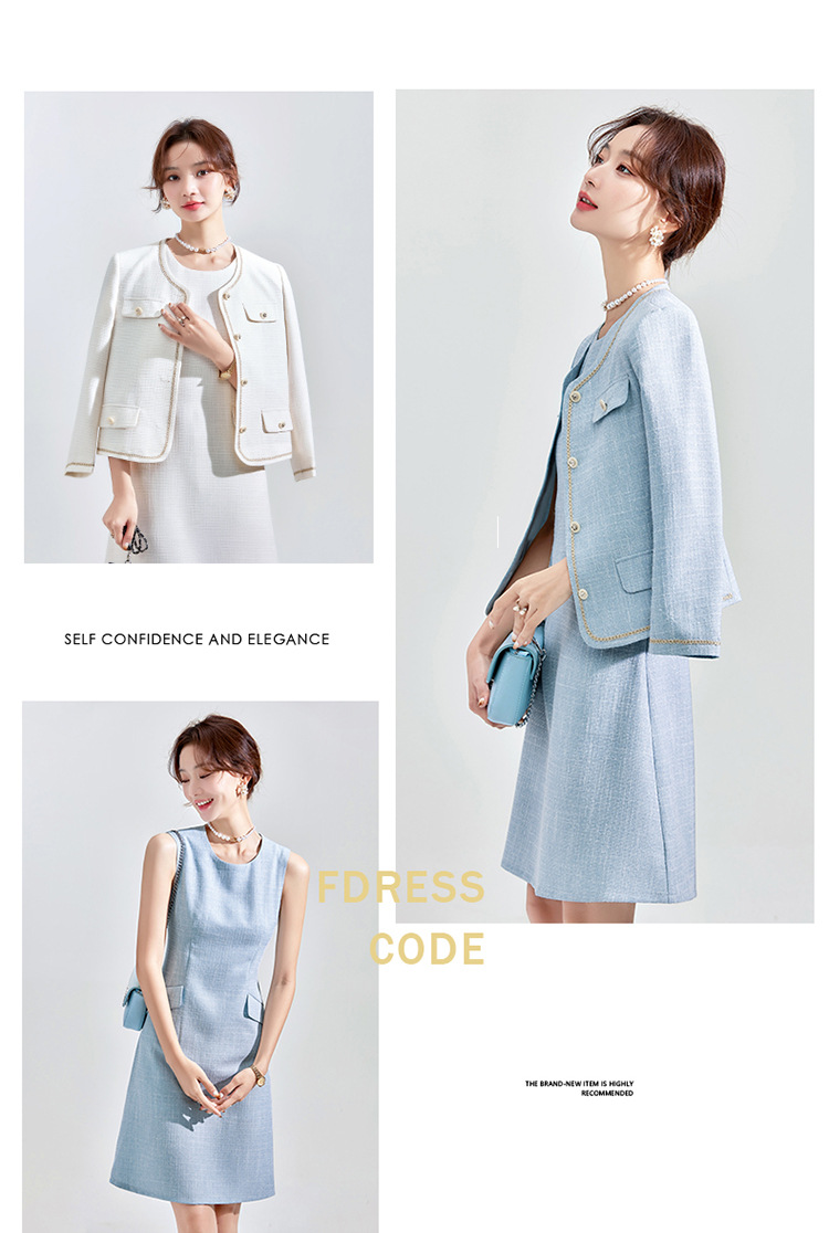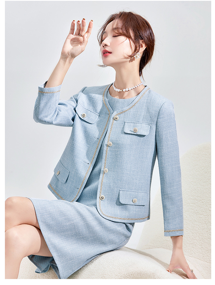 Высококачественный синий костюм, платье на весну и осень 2023, новый стиль, ароматный стиль, короткий костюм в западном стиле с веером богини Mingyuan