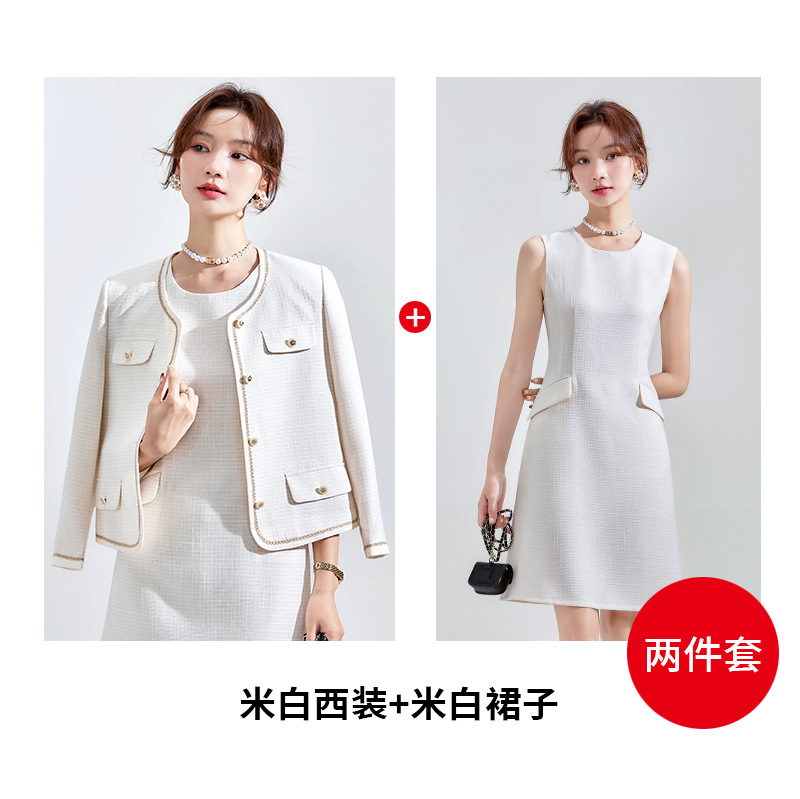 голубой костюм; Костюм кремового цвета; синее платье; Белое платье; Голубой комплект из двух предметов; Комплект из двух предметов белого цвета