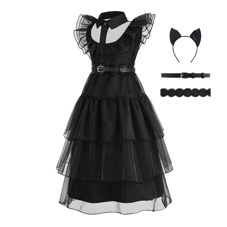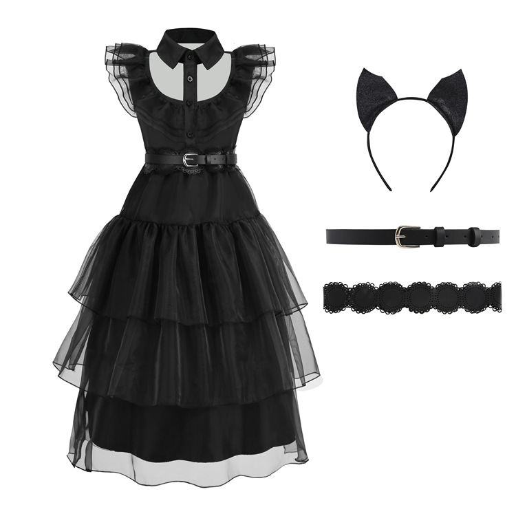 Среда Адамс Черное платье Костюм для косплея Amazon Семейный костюм Адамс Танцевальное платье