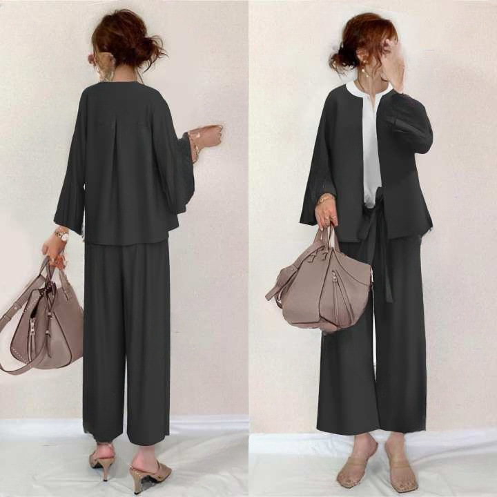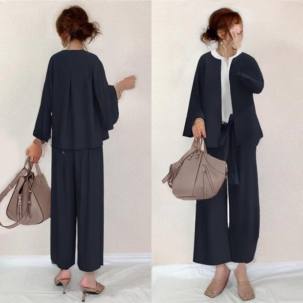 В наличии: Оригинальный японский стиль, летний повседневный комплект из трех предметов для миниатюрных женщин, свободные расклешенные брюки на шнуровке, модель 2026 года.