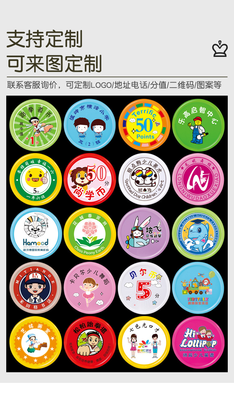 Фиксированная пластиковая монета обучение монета ученик начальной школы очки монета цифровой обмен чип карта жетон карта награда карты монета решений