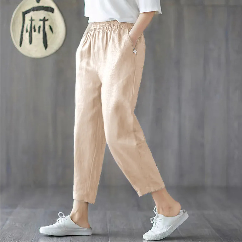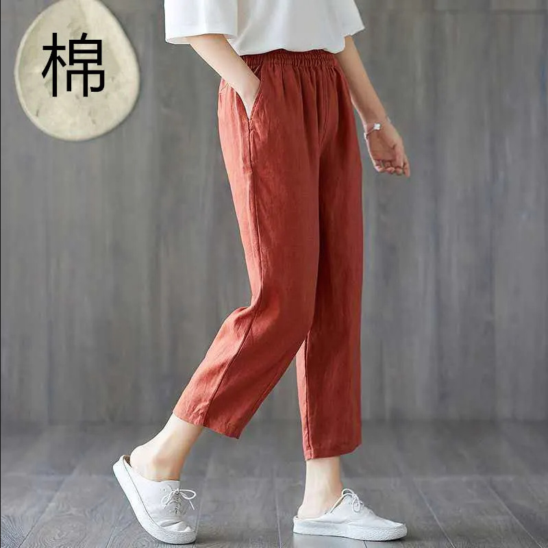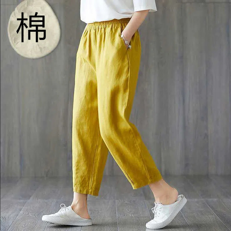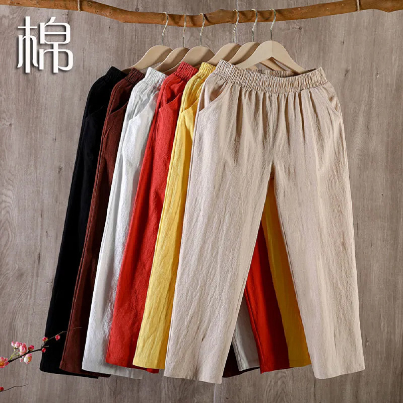 2023 весна-лето новые художественные шаровары из хлопка и льна повседневные свободные подходящие ко всему женские укороченные шаровары с принтом