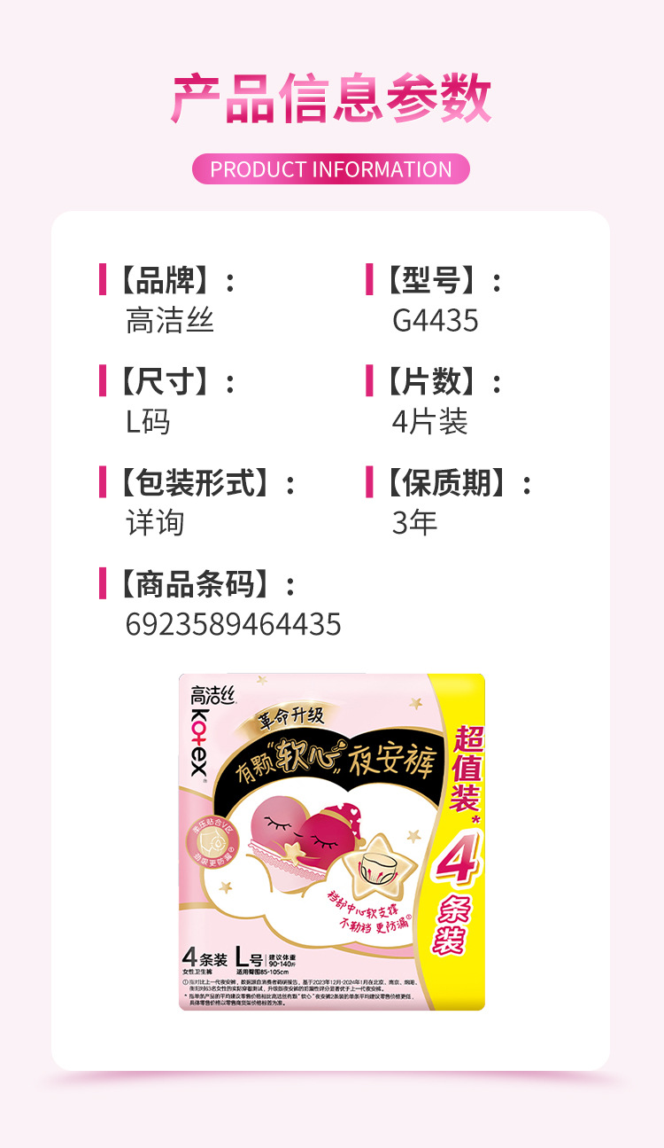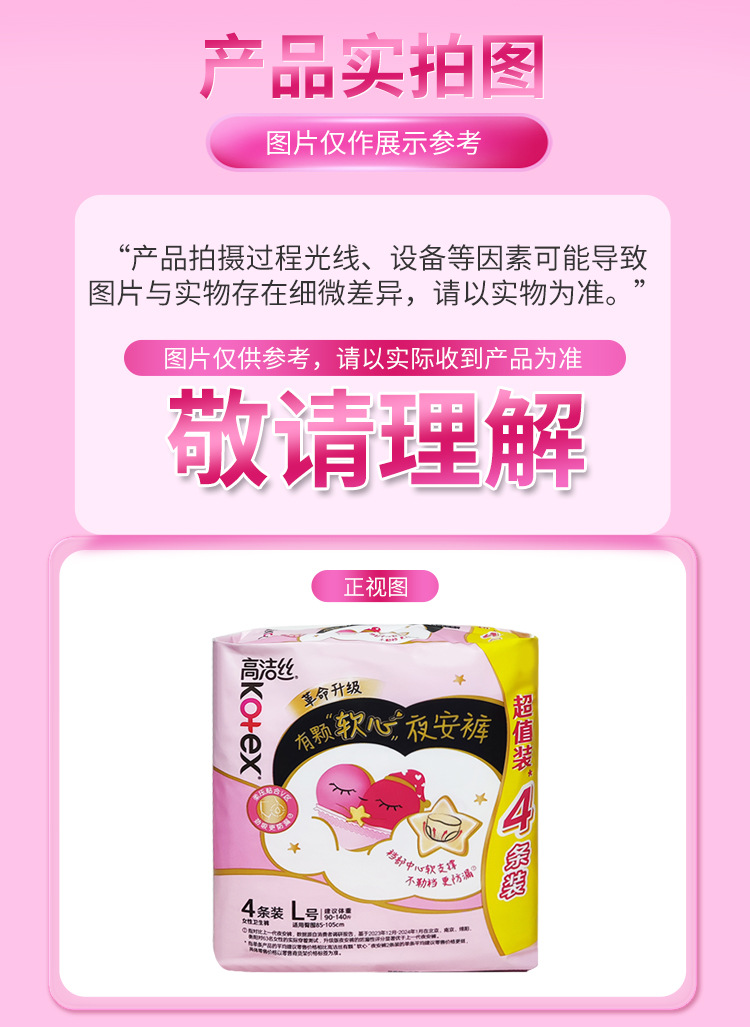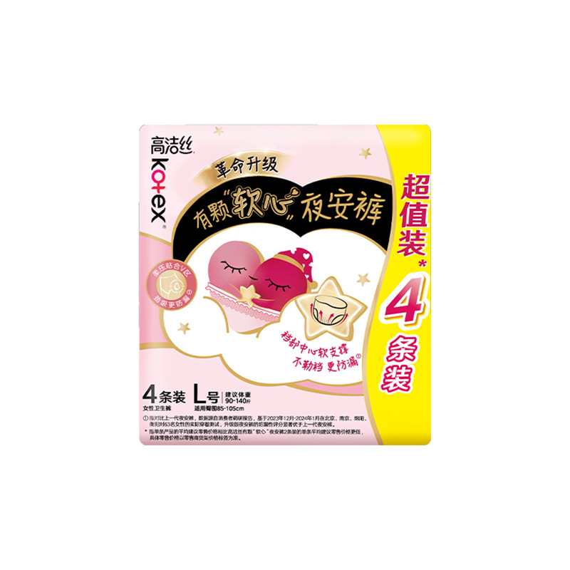 Оптовые продажи ночных прокладок Kotex, удобные трусы, менструальные прокладки, ультратонкие прокладки-трусы для сна, размер L, упаковка 4 шт., G4435