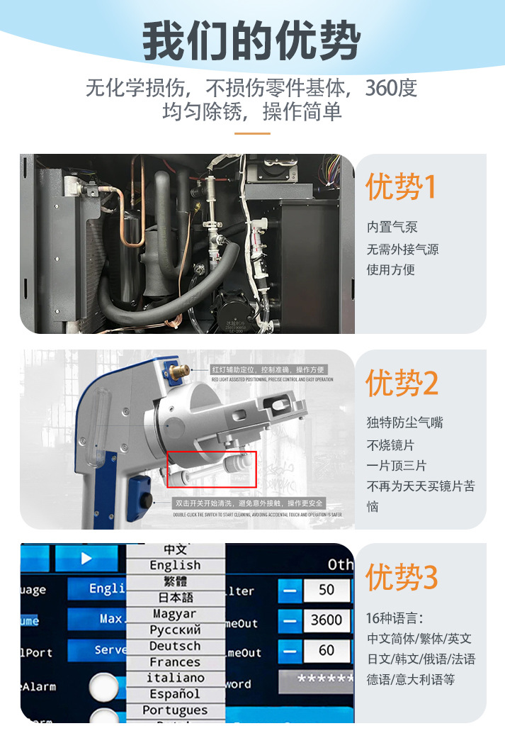 Лазерная очистительная машина - непрерывная мощность 1000 ватт (включая встроенный воздушный насос); Лазерная очистительная машина - непрерывная мощность 1500 ватт (включая встроенный воздушный насос); Лазерная очистительная машина - непрерывная мощность 2000 ватт (включая встроенный воздушный насос); Лазерная очистительная машина - непрерывная мощность 3000 ватт (включая встроенный воздушный насос); Лазерная очистительная машина - импульсная, 100 Вт (JPT); Непрерывная очистительная машина мощностью 2000 Вт - Депозит; Непрерывная очистительная машина мощностью 3000 Вт - депозит; Пульсаторная стиральная машина 100 Вт - Депозит; Ручной лазерный очиститель (авансовый платеж/депозит)