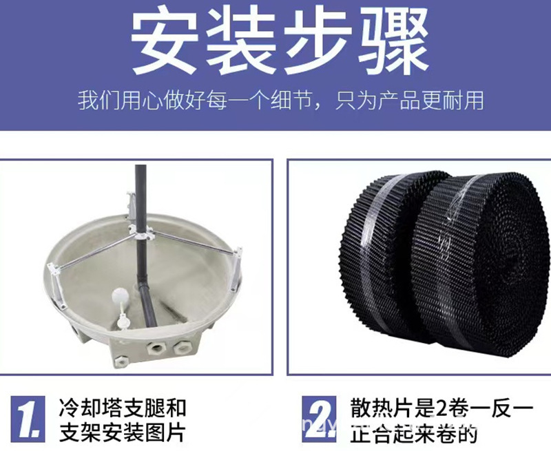 选用高强度铝合金水塔专用风机,风量大,噪声低,重量轻。表层做8级高附着力喷涂防腐处理,抗腐蚀,抗氧化。可调叶片角度满足不同要求,安装维护简单。