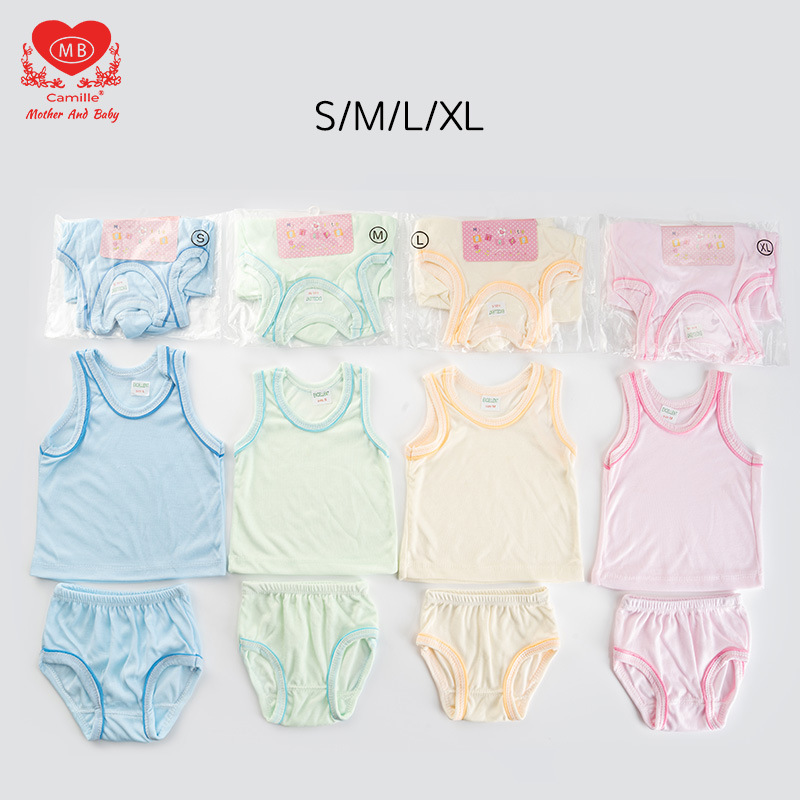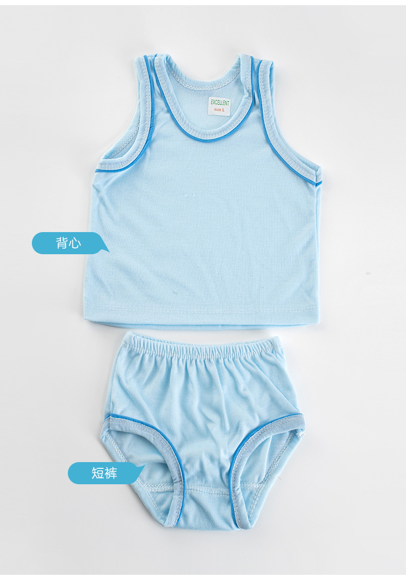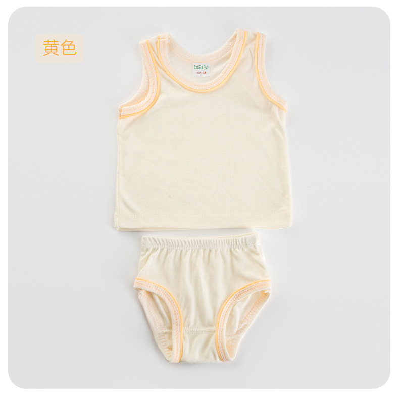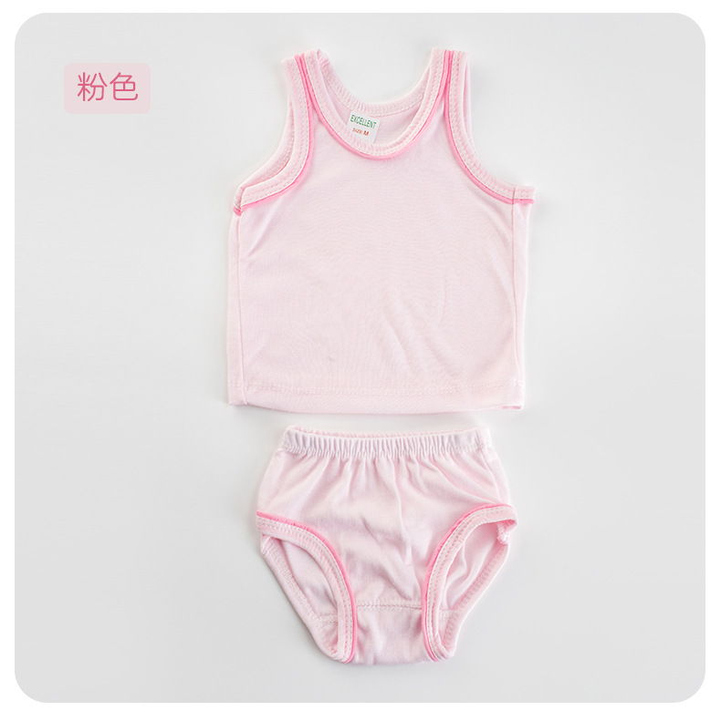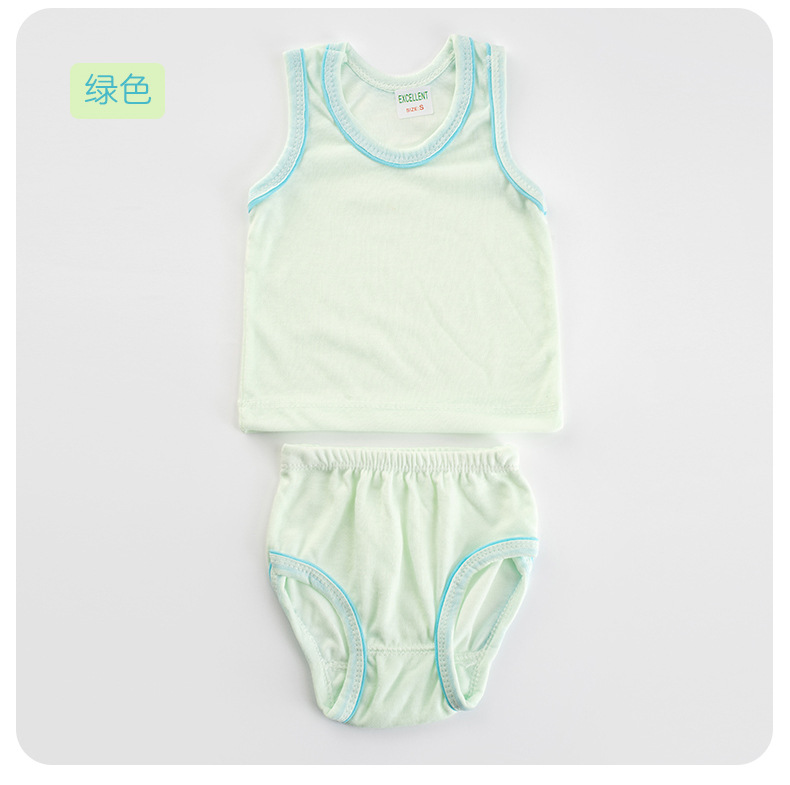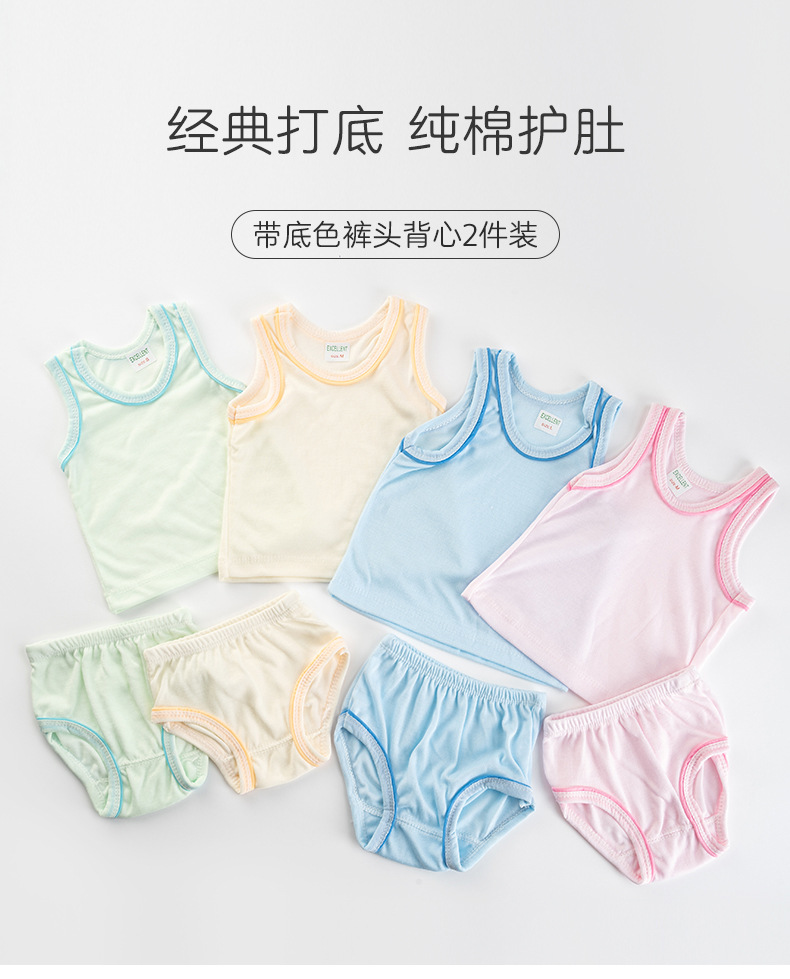 Детский комплект из двух предметов: штанишки и безрукавка из чистого хлопка, базовый цвет, картонная упаковка, однотонный цвет, обработанные края.