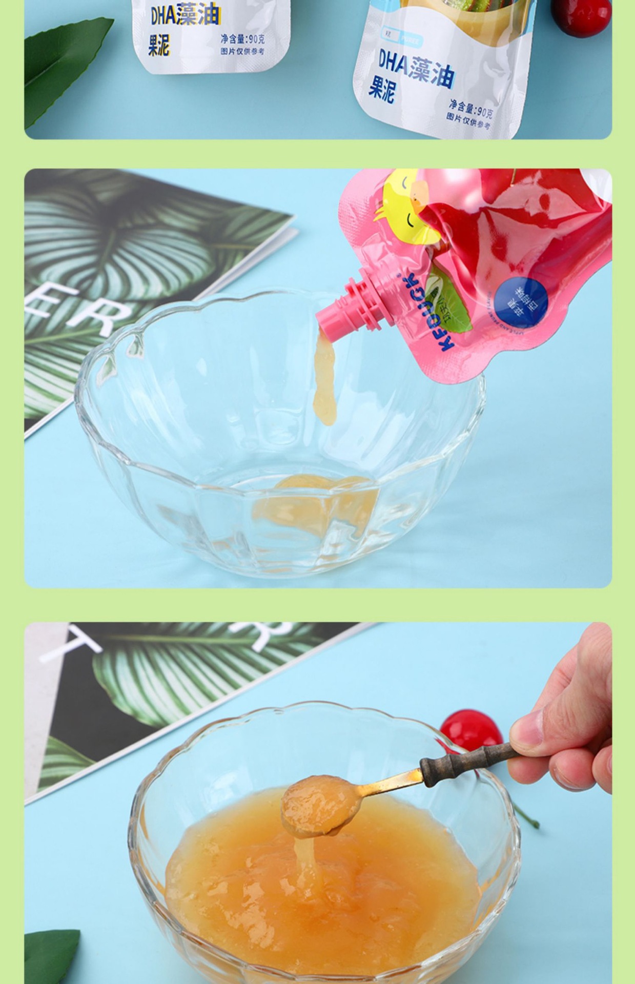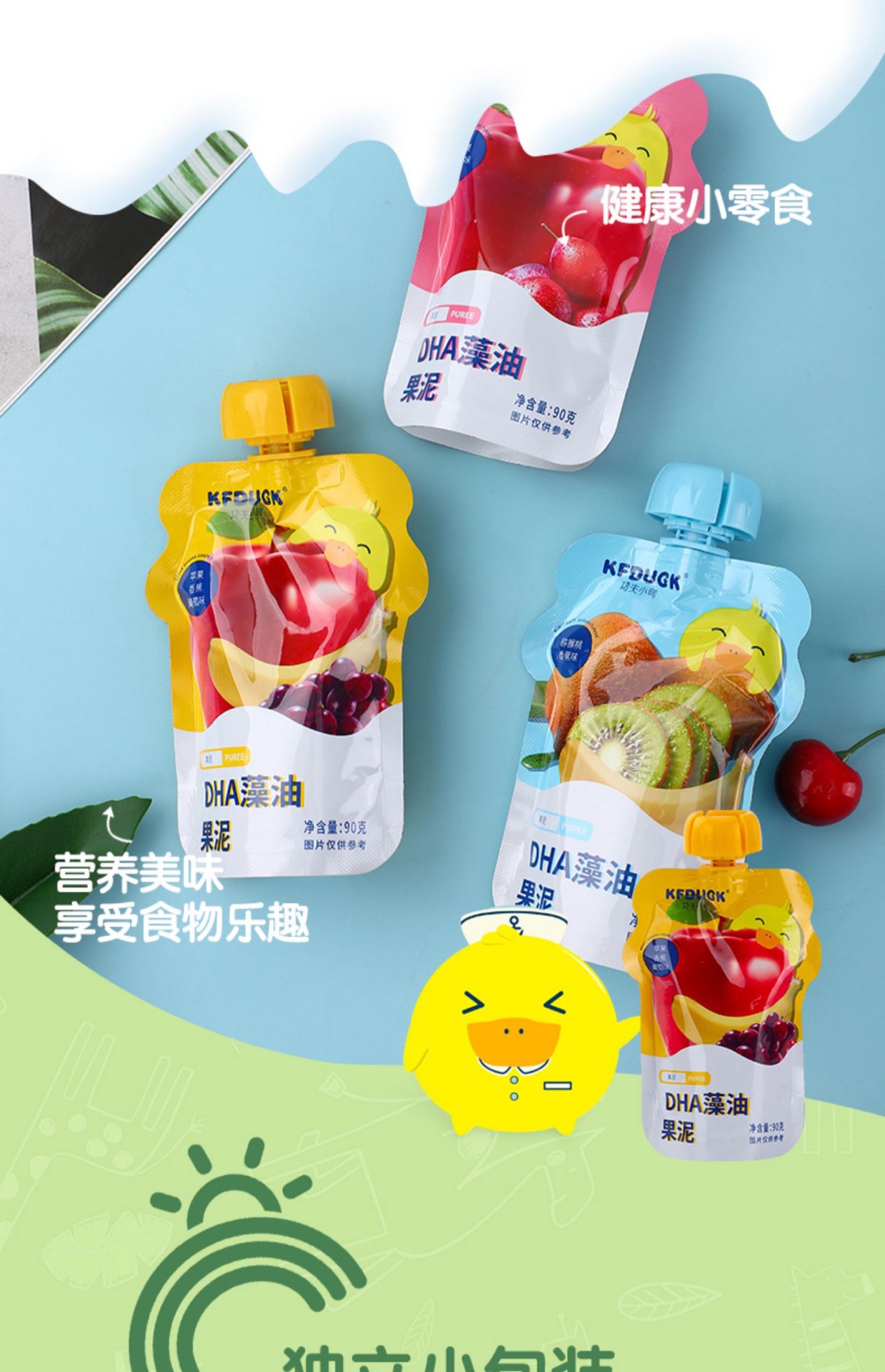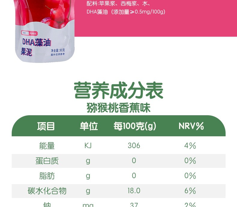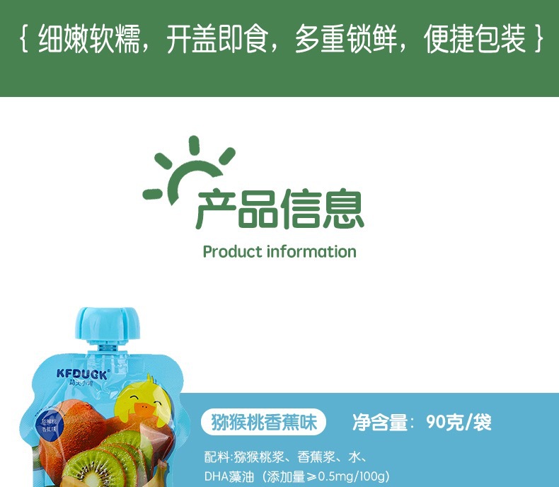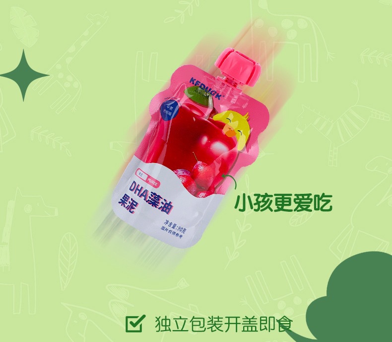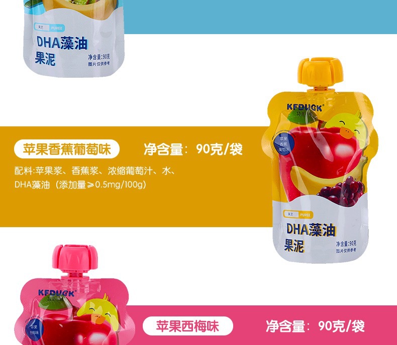 Кунг-фу утенок DHA водоросли масло и фрукты пюре детские закуски еда пюре яблоко банан чернослив фруктовое пюре 90 г