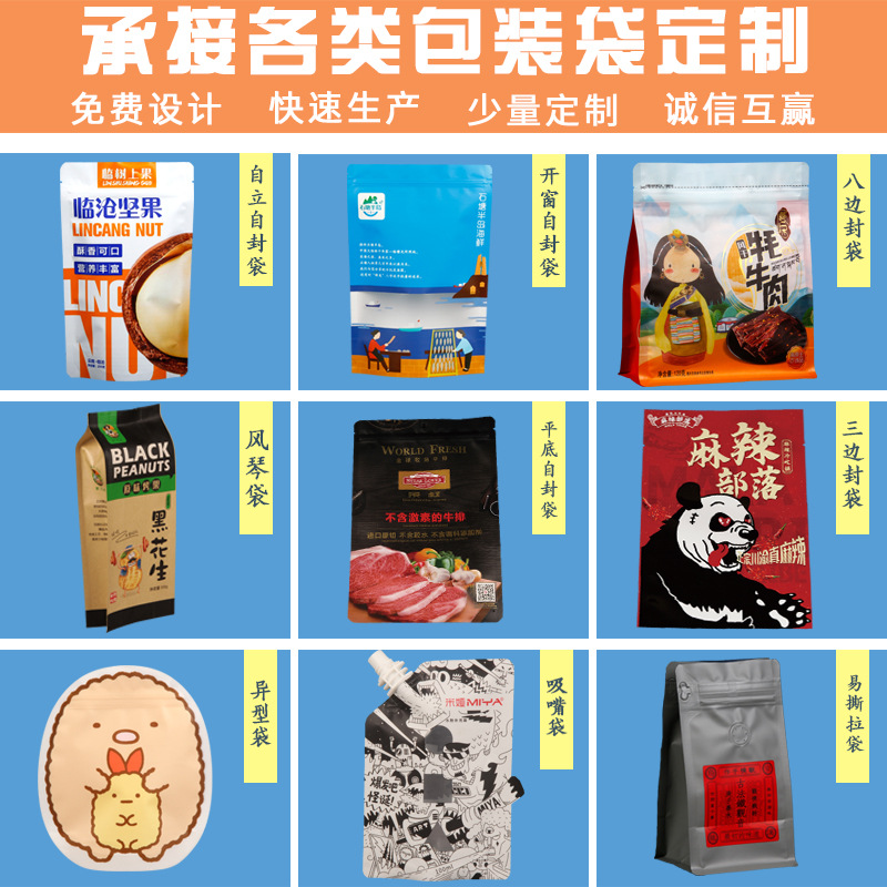 Плата за выпуск 0 небольшая партия на заказ, восьмисторонний герметизирующий пакет, самостоятельный пакет, цифровая печать, алюминиевая фольга, пищевой самоуплотняющийся пакет, упаковочный пакет