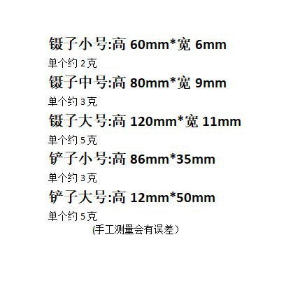 Большая лопата; маленькая лопата; Треугольный скребок большого размера; Квадратная лопата 2,5 см*8,5 см.; Большой пинцет [мягкий]; Пинцет средний [мягкий]; Маленький пинцет [мягкий]; размер