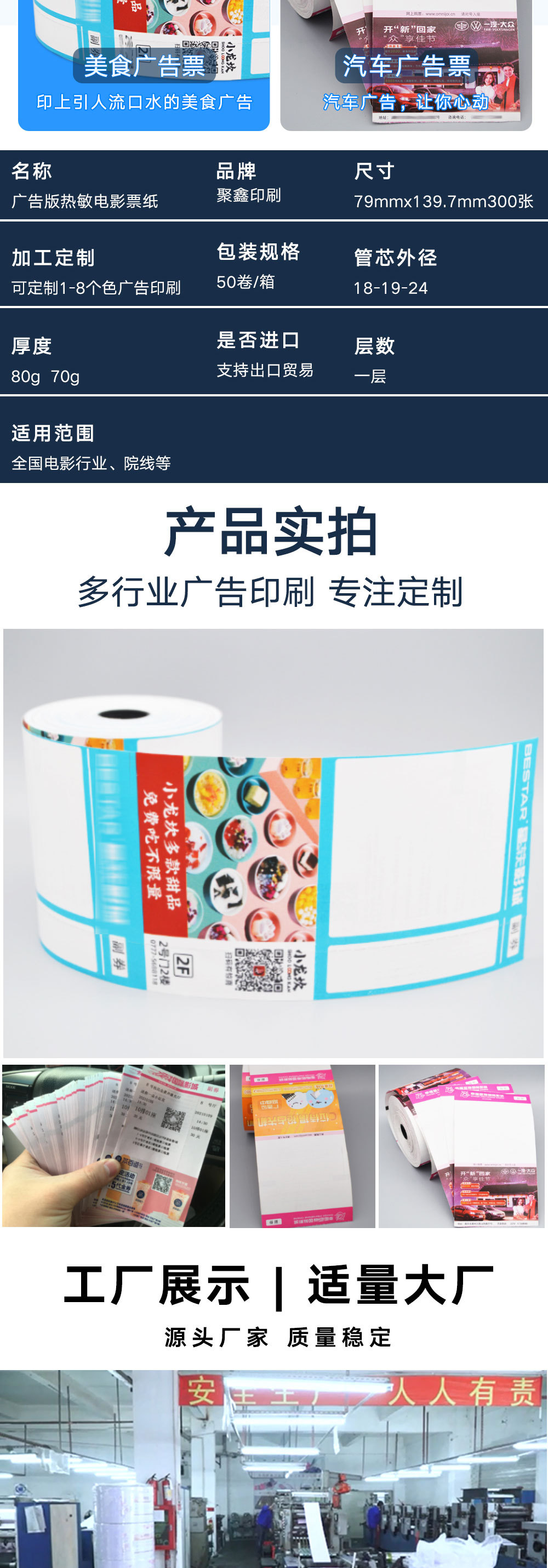 新版电影票广告加长版79X139.7MM 300张/卷,79X127MM 400张/卷 彩色高清版,可印即将上映电影广告,餐饮美食广告,汽车广告,房地产广告等等 ,提前锁定,吸引顾客眼球!