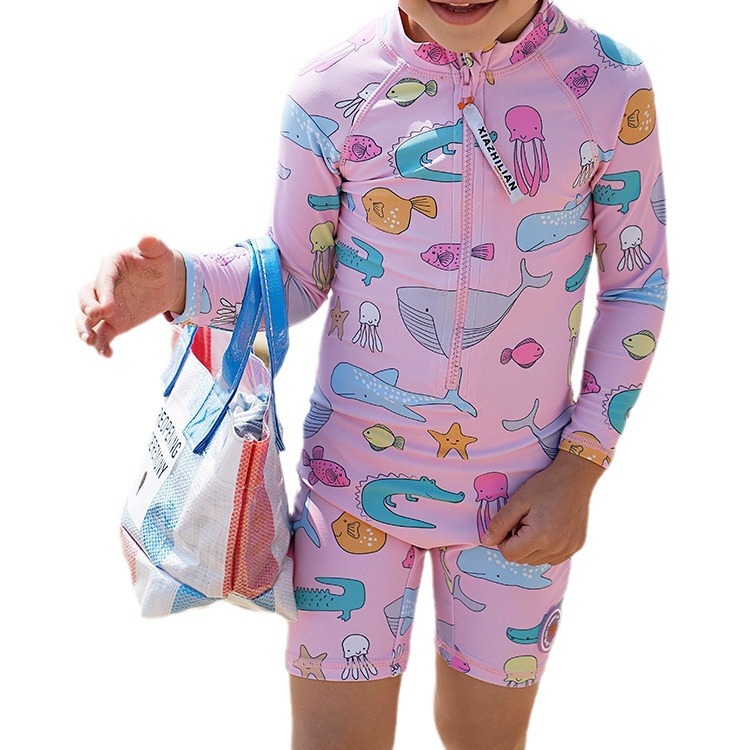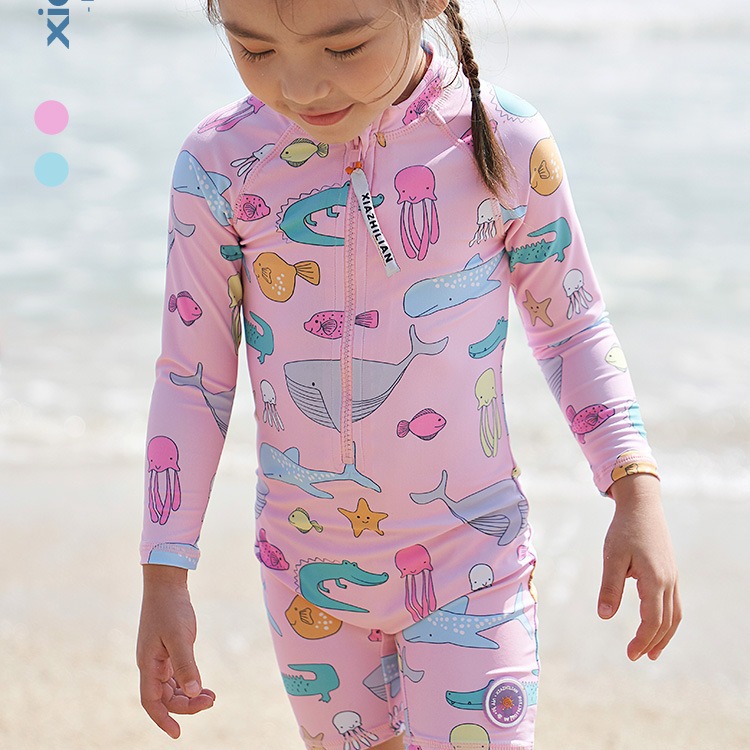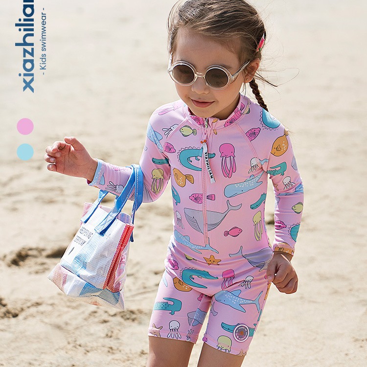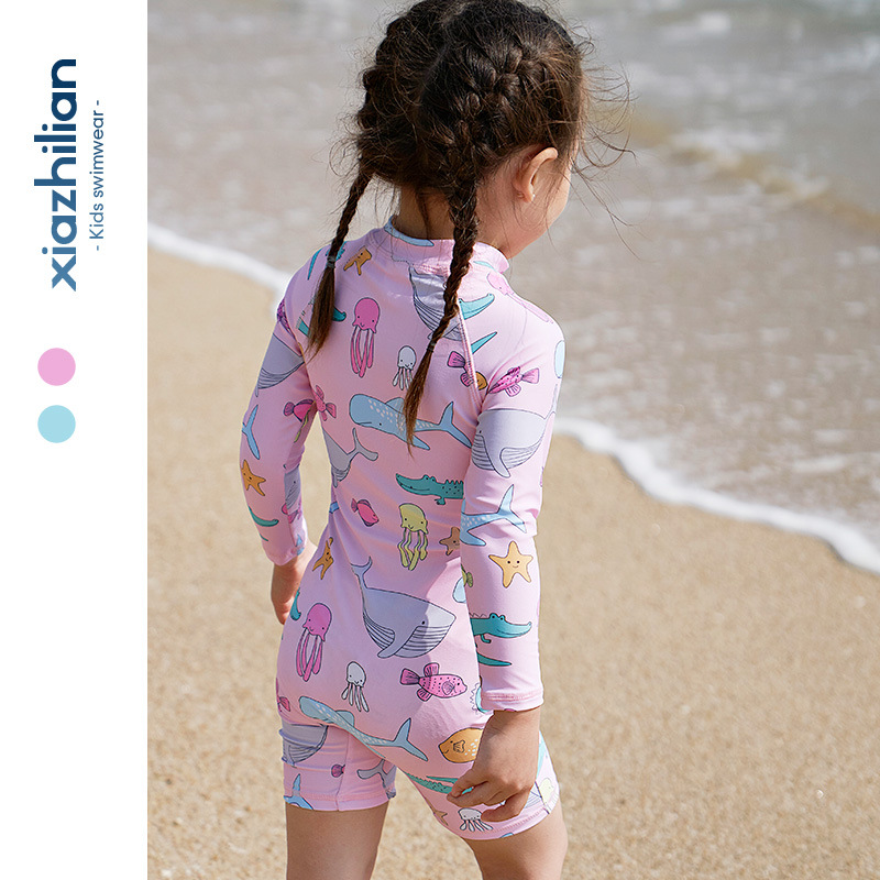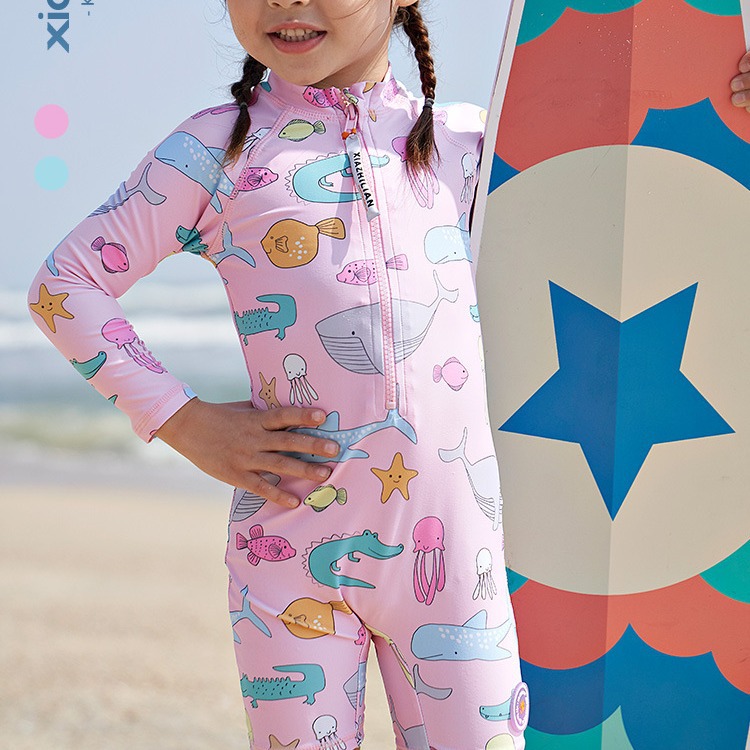 Купальники для девочек Han Fan, Цельный Солнцезащитный крем с длинными рукавами, купальники для маленьких и средних детей, модная одежда для пляжного серфинга для девочек