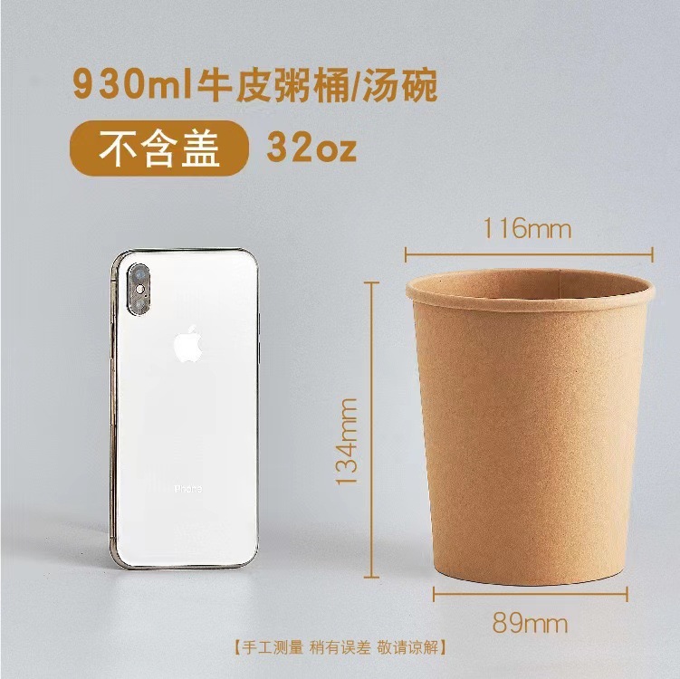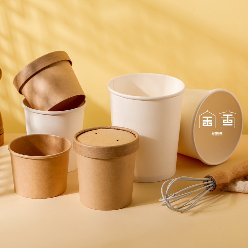 Одноразовые ведро для супа на вынос упаковочная коробка Крафт-бумага ведро для каши с крышкой Горячий и кислый порошок бумажный шар чашка супа для печати логотип