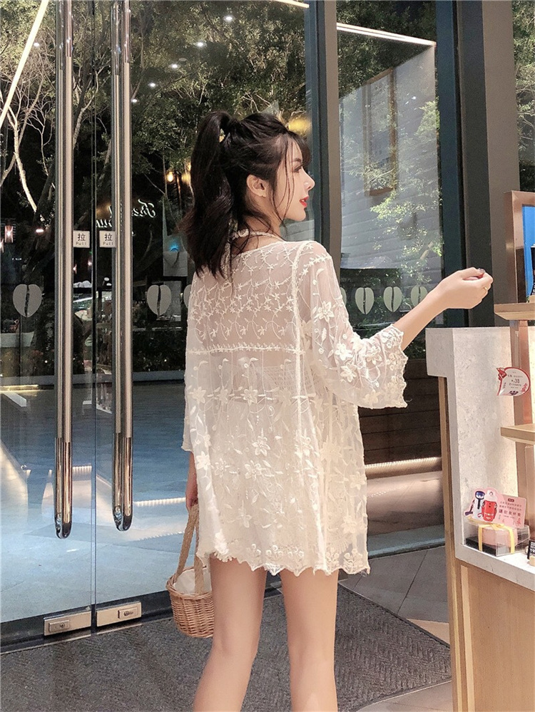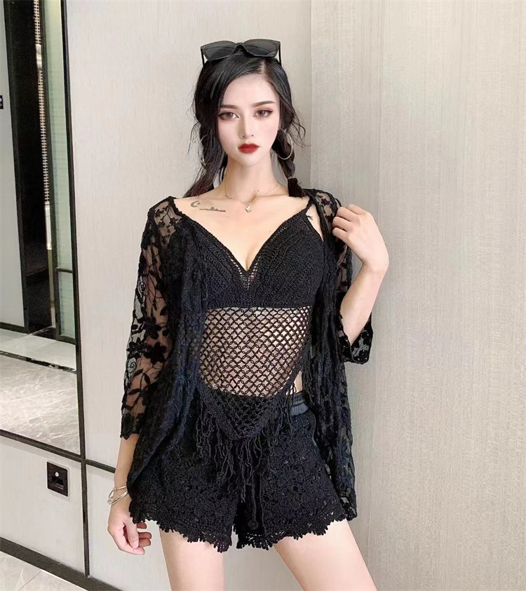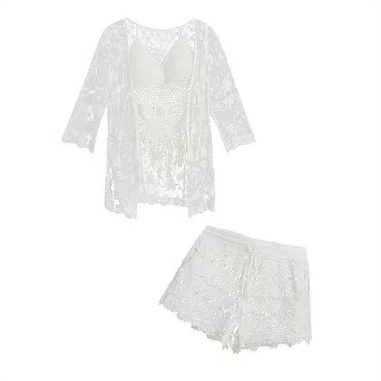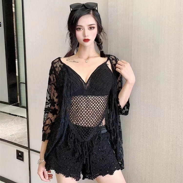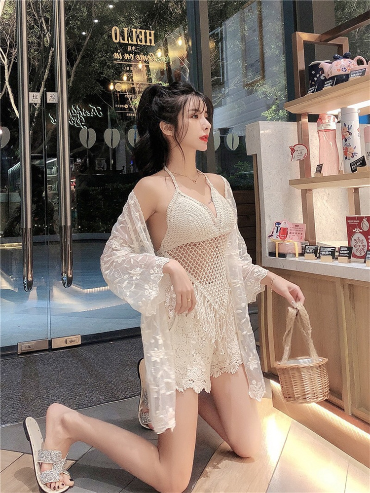 Костюм в богемном этническом стиле крутая полая вышивка вязаный женский отдых приморский пляж Защита от солнца