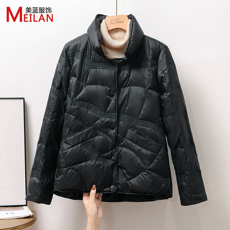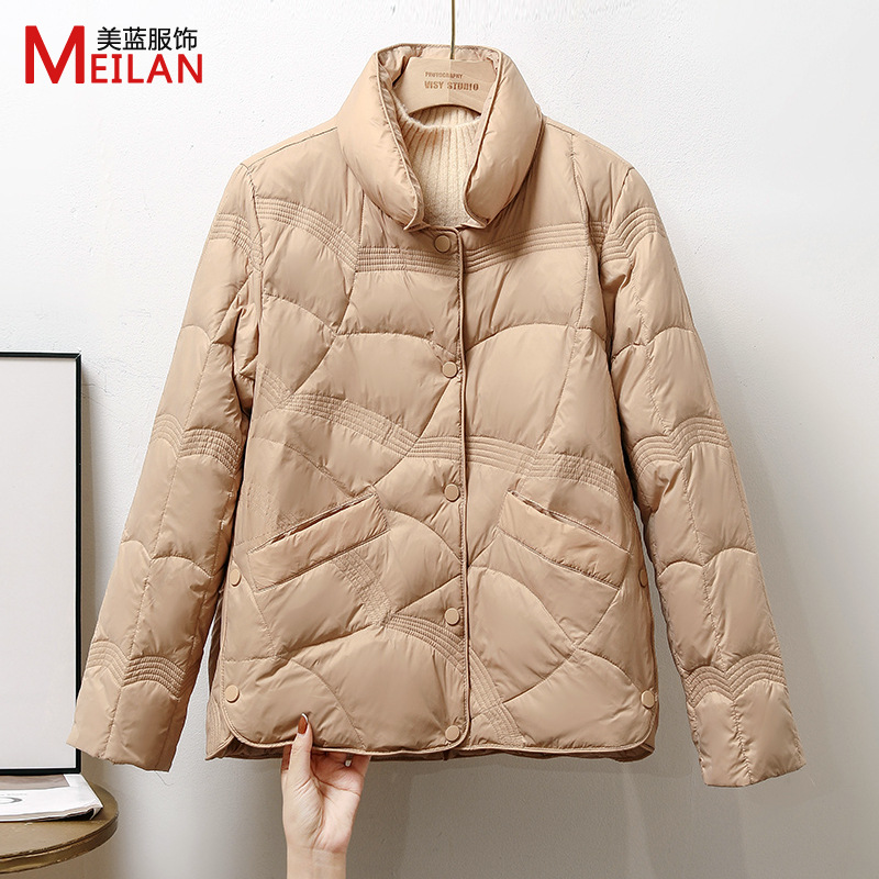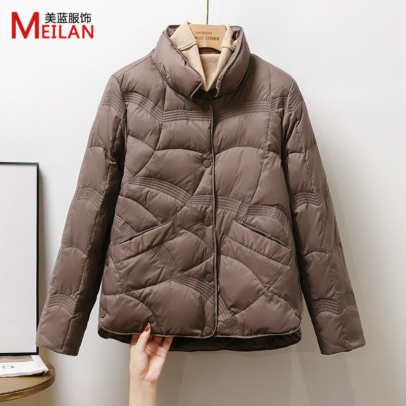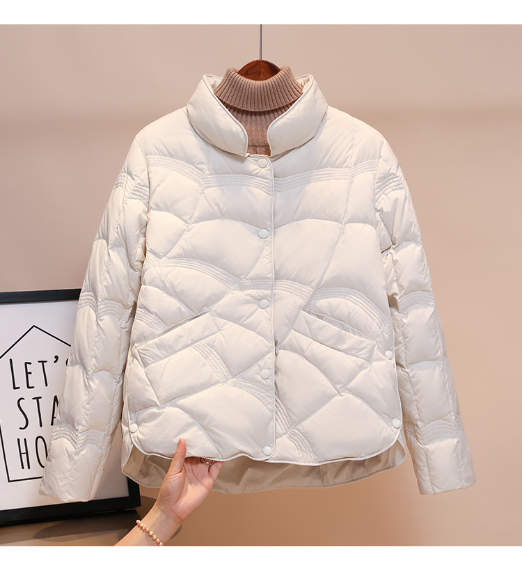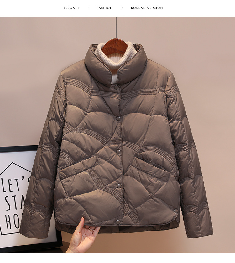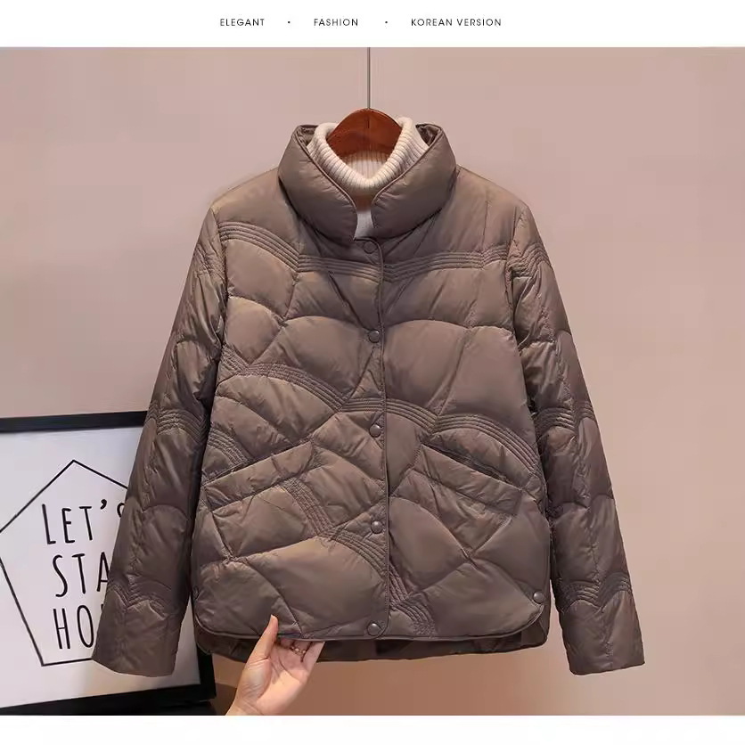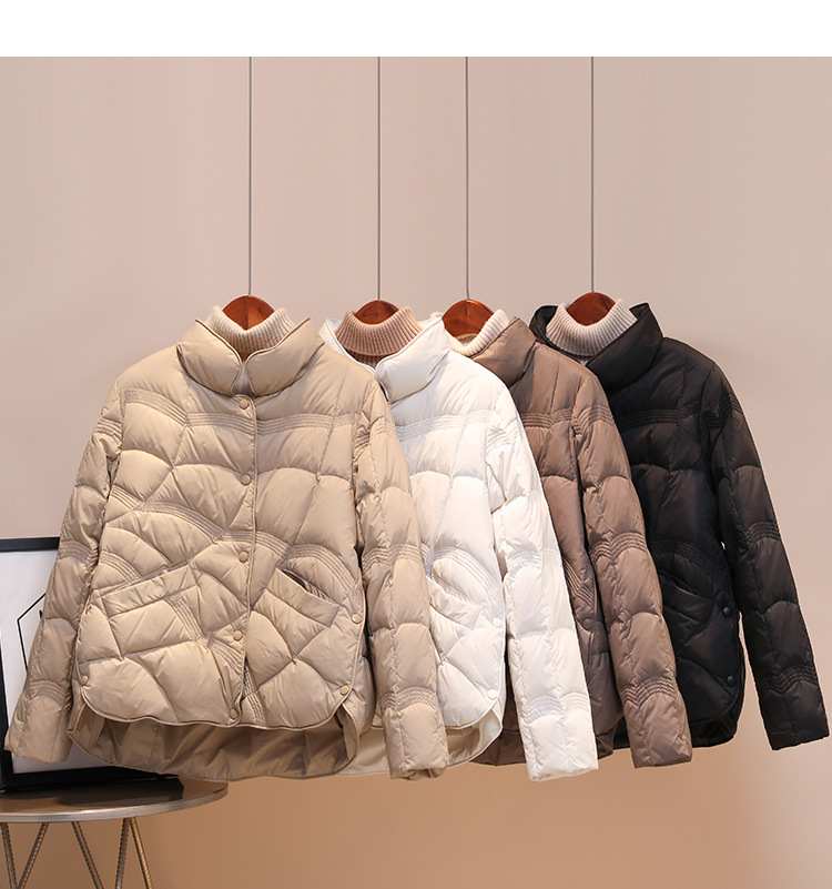 Женская пуховая куртка 2024 Pinghu осень-зима новая короткая тонкая и легкая облачная стоячий воротник простой трансграничный горячий