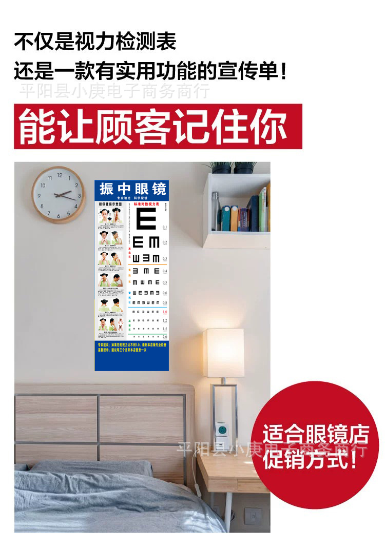Индивидуальная таблица для проверки зрения, рекламная таблица для проверки зрения, печать логотипа, название магазина, ПВХ, высота наклейки, мультяшная бумага, листовка, индивидуальный заказ