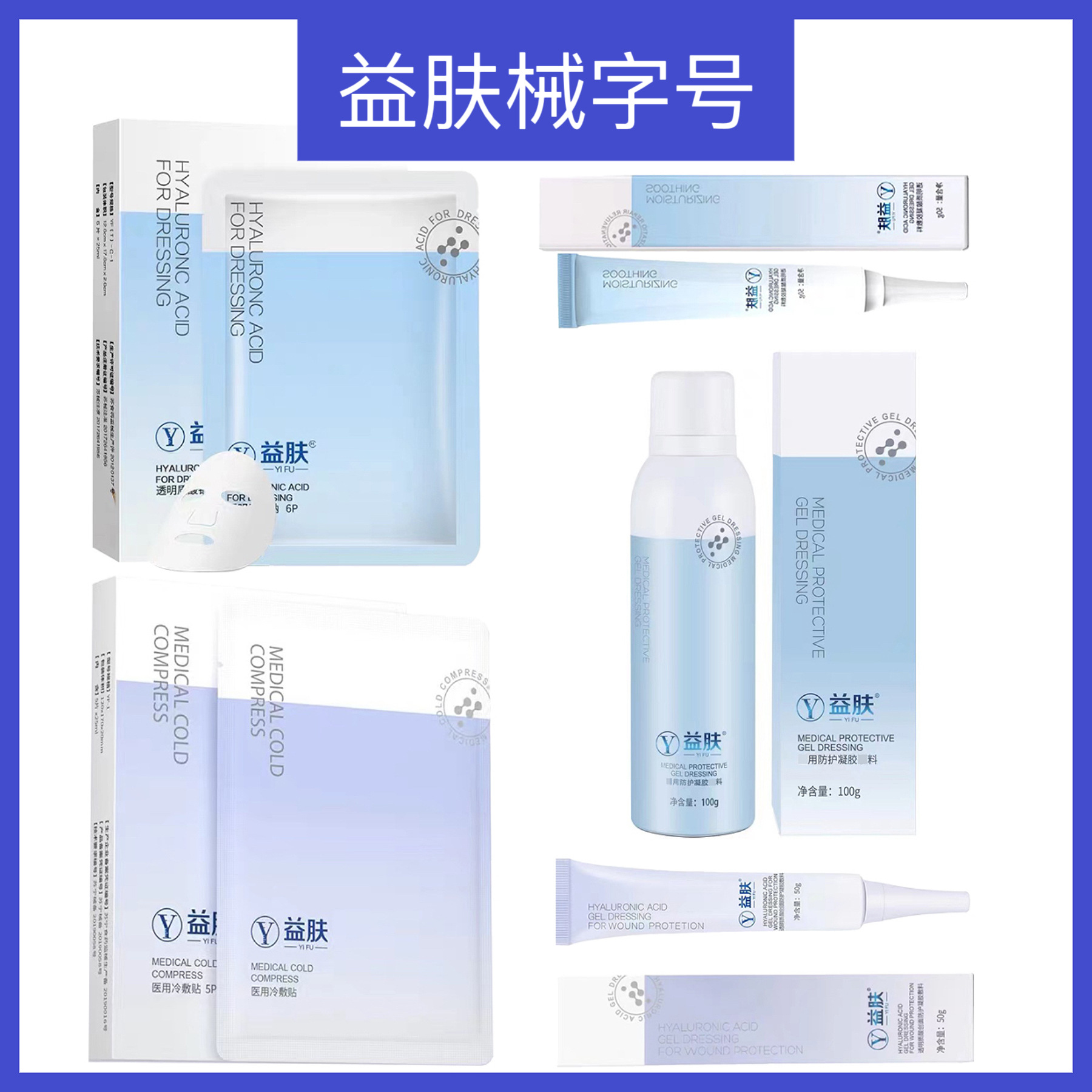 Гель Yifu Blue (синий) и Purple (фиолетовый), маска Blue Mask и Purple Mask с гиалуроновой кислотой, медицинский пластырь, можно использовать после операции для лечения акне и заживления ран.