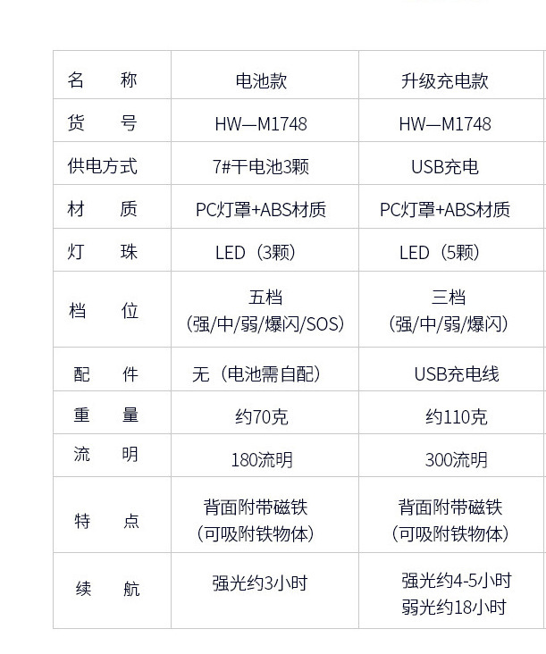 光源:5颗高亮贴片LED灯泡电池款:3颗灯珠产品光通量:高亮180LM中亮90LM快闪70LM