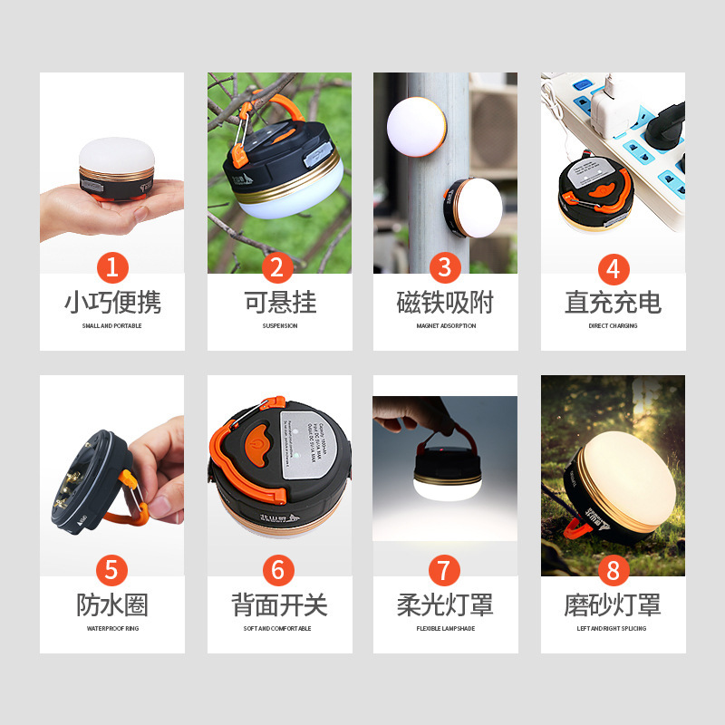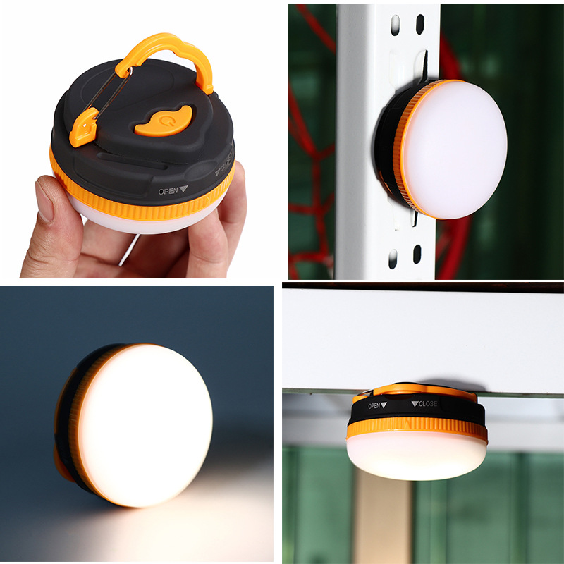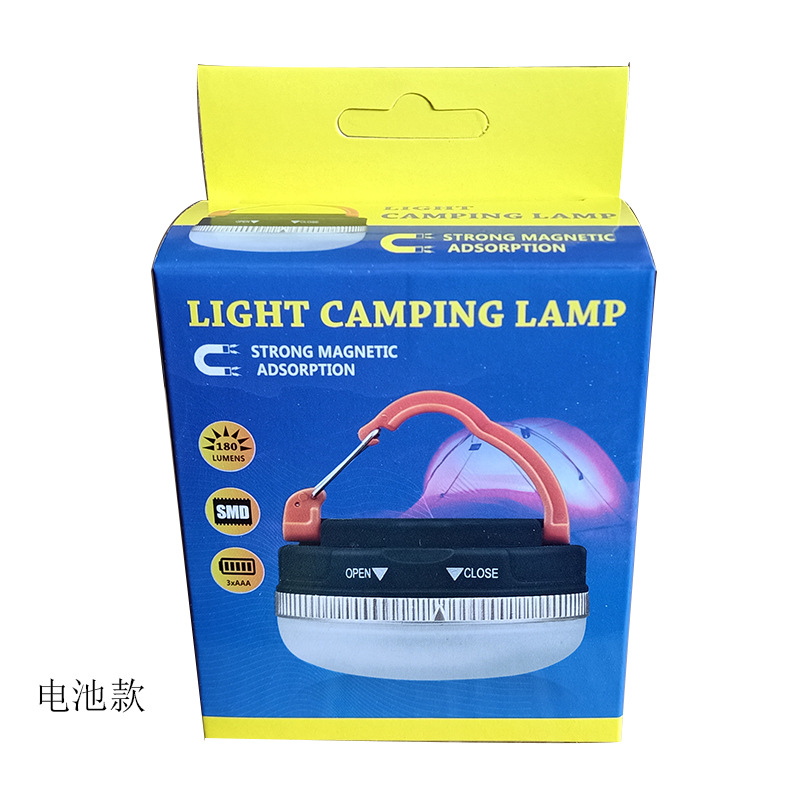 This tent light is made of 37th batteries(the product is shipped without abattery),the product is 3LED patch lights,high brightness. The product is equipped with 5files of dimming,compact and practical.The product uses high quality ABS material,high hardness,not easy to damage, surface frosted treatment,anti-scratch.A variety of uses,can meet the needs of different environments,portable with a hanging hook desian, convenient plug-in,built-in strong magneticcan make it firmly absorbed on the body