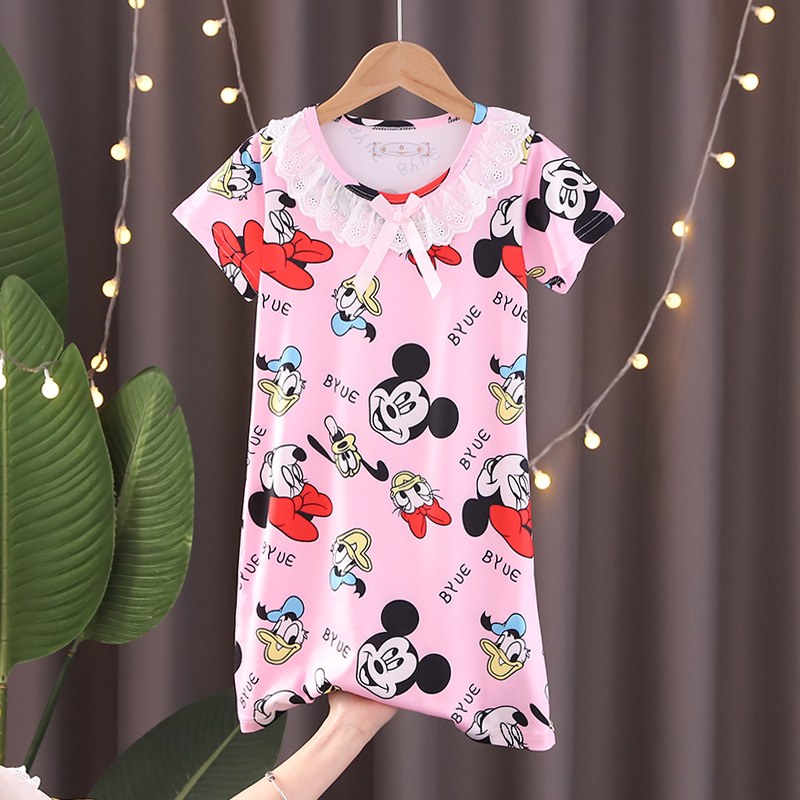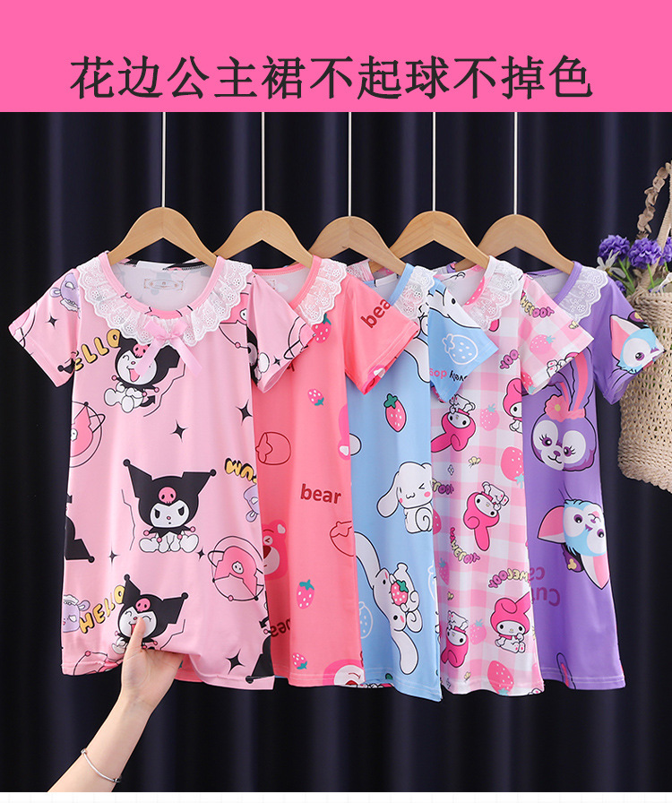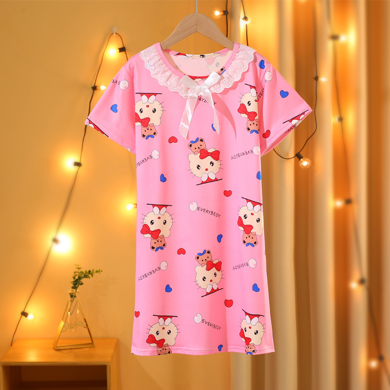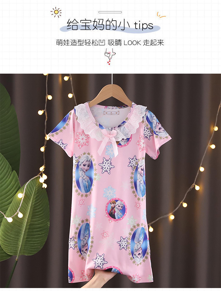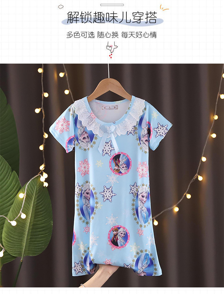 Летняя ночная рубашка с коротким рукавом пижамы для девочек тонкие дети принцесса мультфильм корейский ребенок дети девочки Ночная рубашка оптом