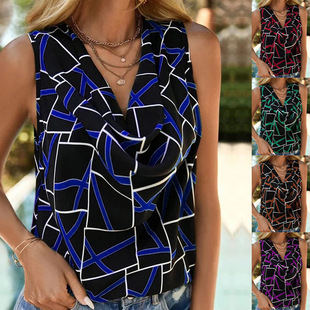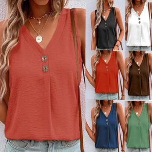Европейская и американская трансграничная модная новинка лета 2023 года для Amazon и eBay: топ-майка без рукавов с V-образным вырезом и стразами, укороченная футболка без рукавов