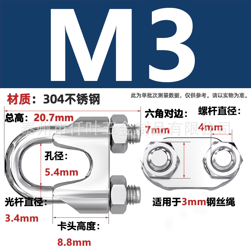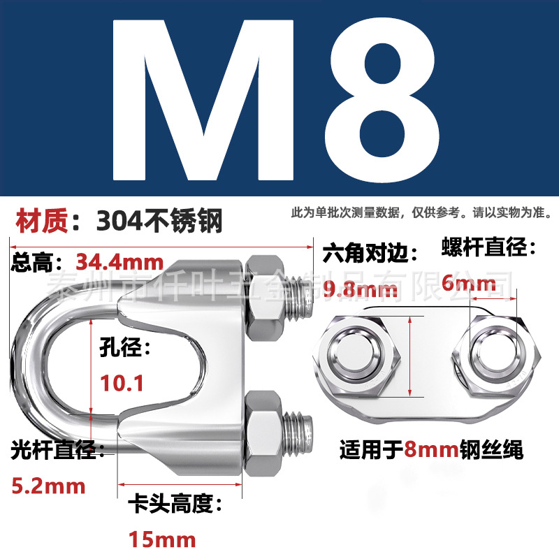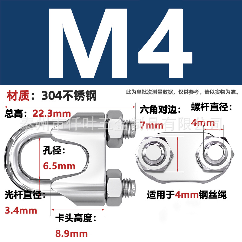 Зажим для троса из нержавеющей стали 304, U-образный, с фиксатором, одинарный и двойной зажимы