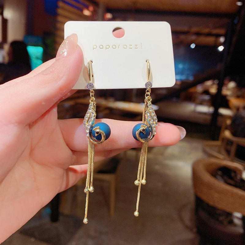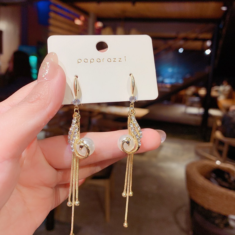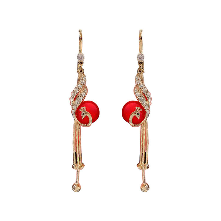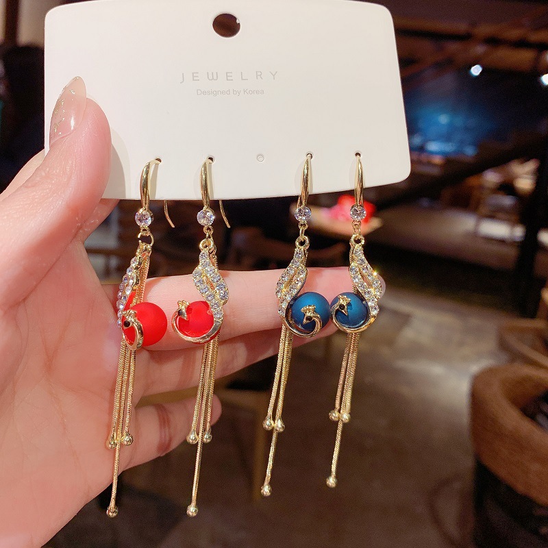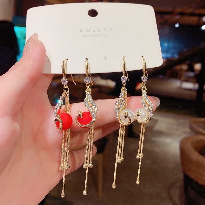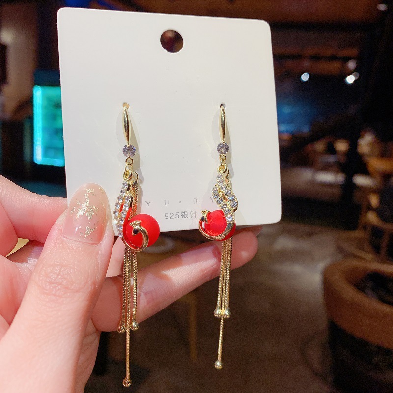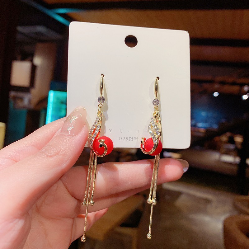 2023 новый красный павлин жемчуг с кисточками серьги индивидуальность дизайн стильный длинный темперамент тонкое лицо серьги
