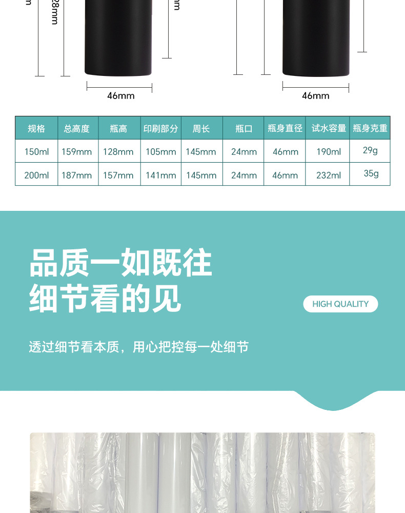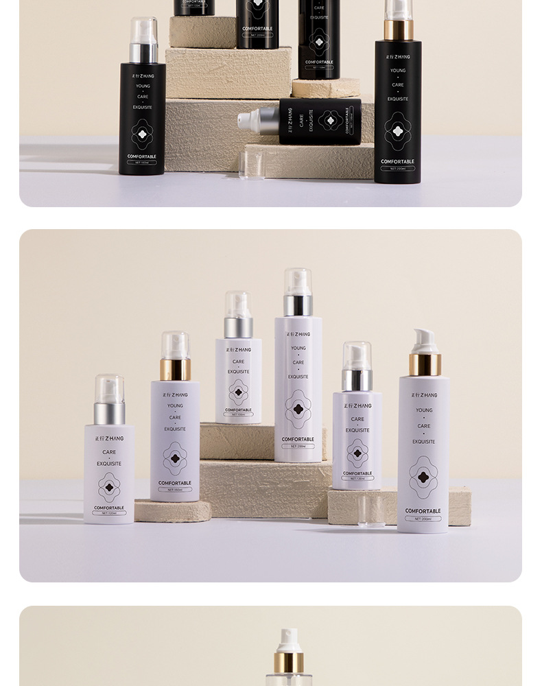 В наличии: цилиндрический флакон для лосьона 100 мл, флакон-спрей для тоника и косметических средств 150 мл, высококачественный.