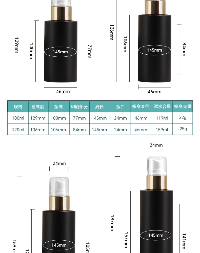 现货100ml120ml150ml200ml乳液喷雾瓶化妆品分装瓶磨砂pet塑料瓶