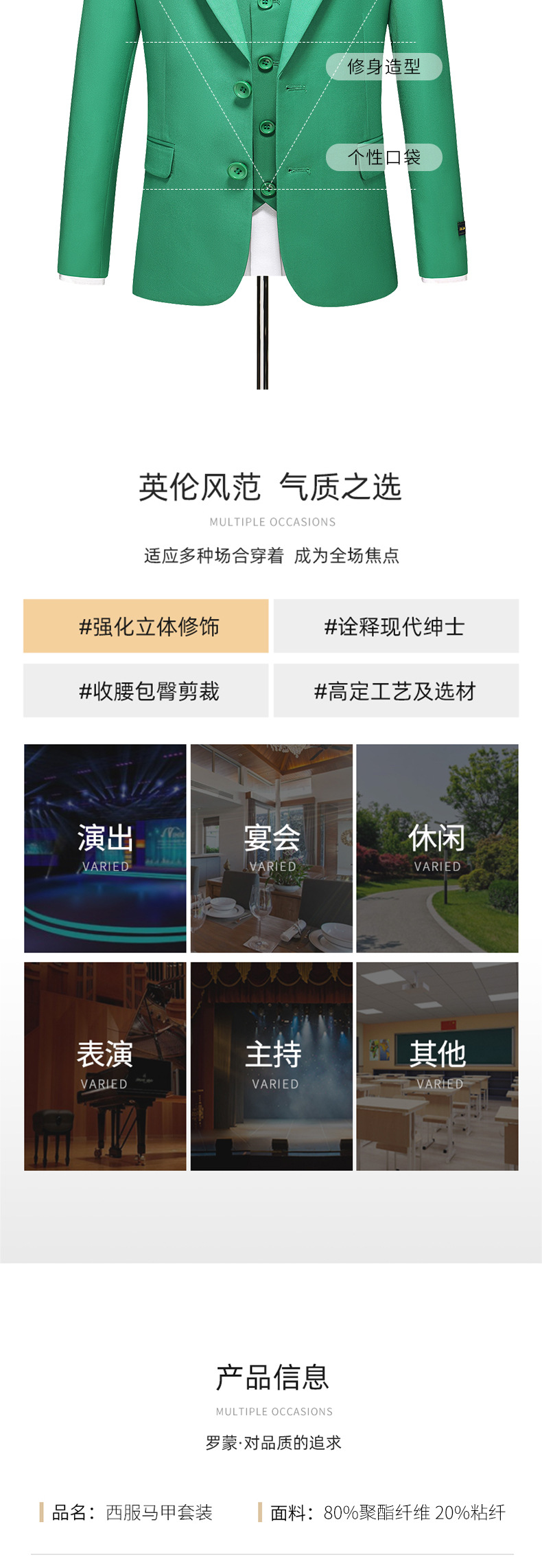 Светло-зеленая тройка "пиджак + жилет + брюки]