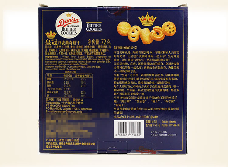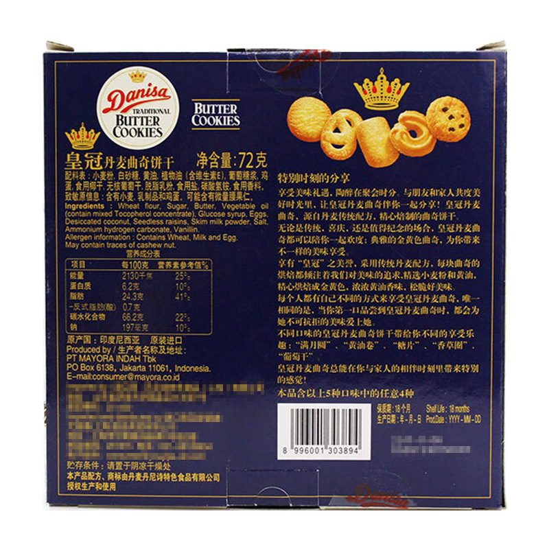 Индонезия импортирует danisa Crown датское печенье 75g в коробке для печенья