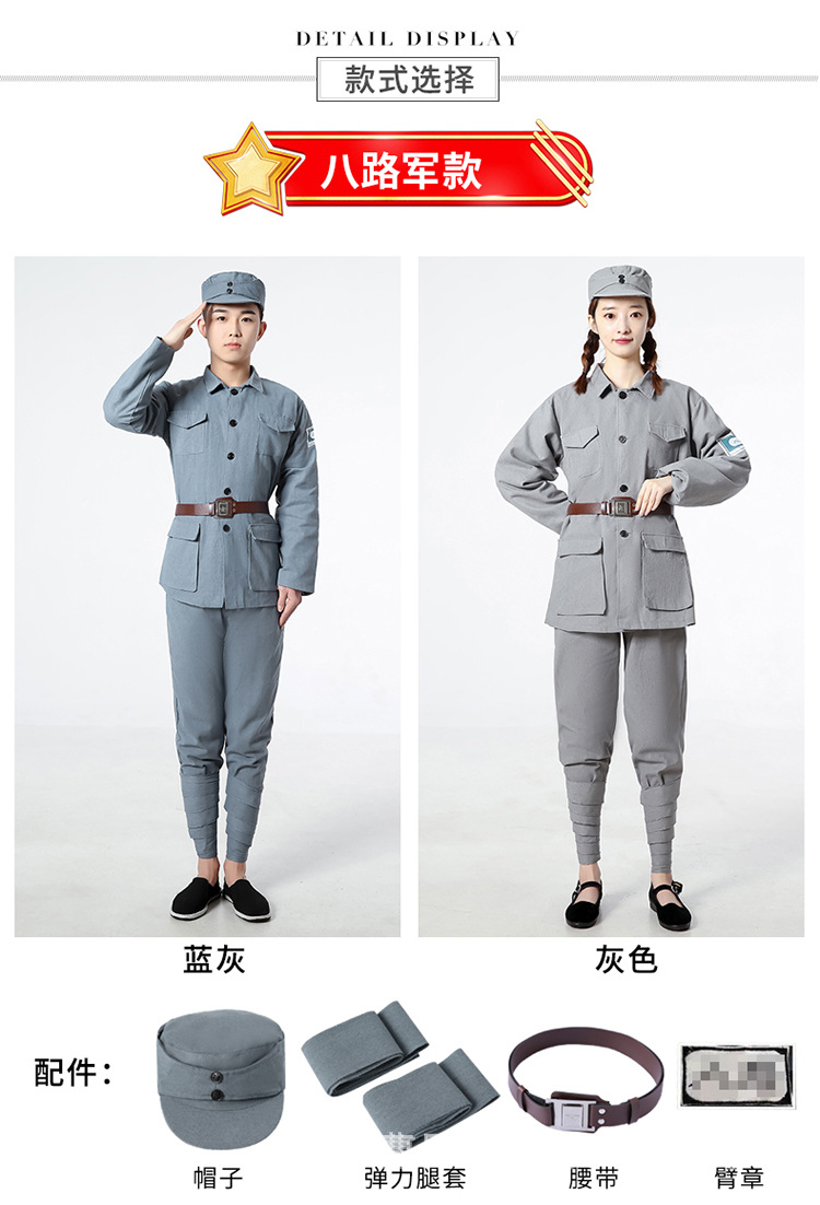 Синий Серый Реальный Карман Красная Армия Униформа; Небесно-Голубой Реальный Карманный Красный Армия Униформа; Армия Зеленая Красная гвардия; Волонтеры цвета хаки; Освободительная армия хаки; Хлопок и лен Красная армия мешок; Хлопок и лен серая Красная Армия шляпа; Хлопок и лен шляпа синей Красной армии; Хлопковая и льняная серая армейская шляпа Eighth Route; Хлопковая и льняная синяя армейская шляпа Восьмой маршрут; Наружный пояс Красной армии; Синий рукав стрейч ноги