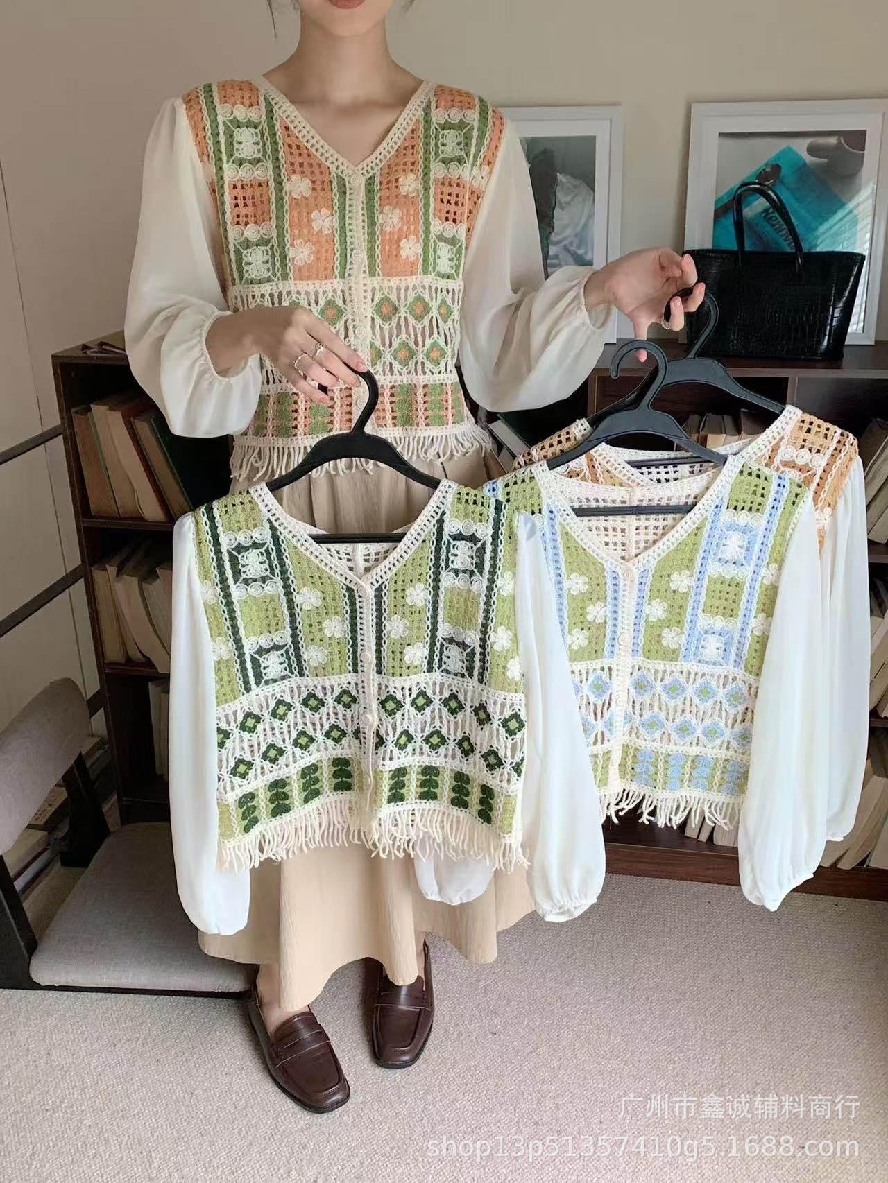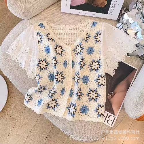 Весна и осень Новая вязаная крючком тонкая шифоновая рубашка с лацканами с вышивкой, женская дизайнерская Свободная рубашка в стиле Шанель, Топ
