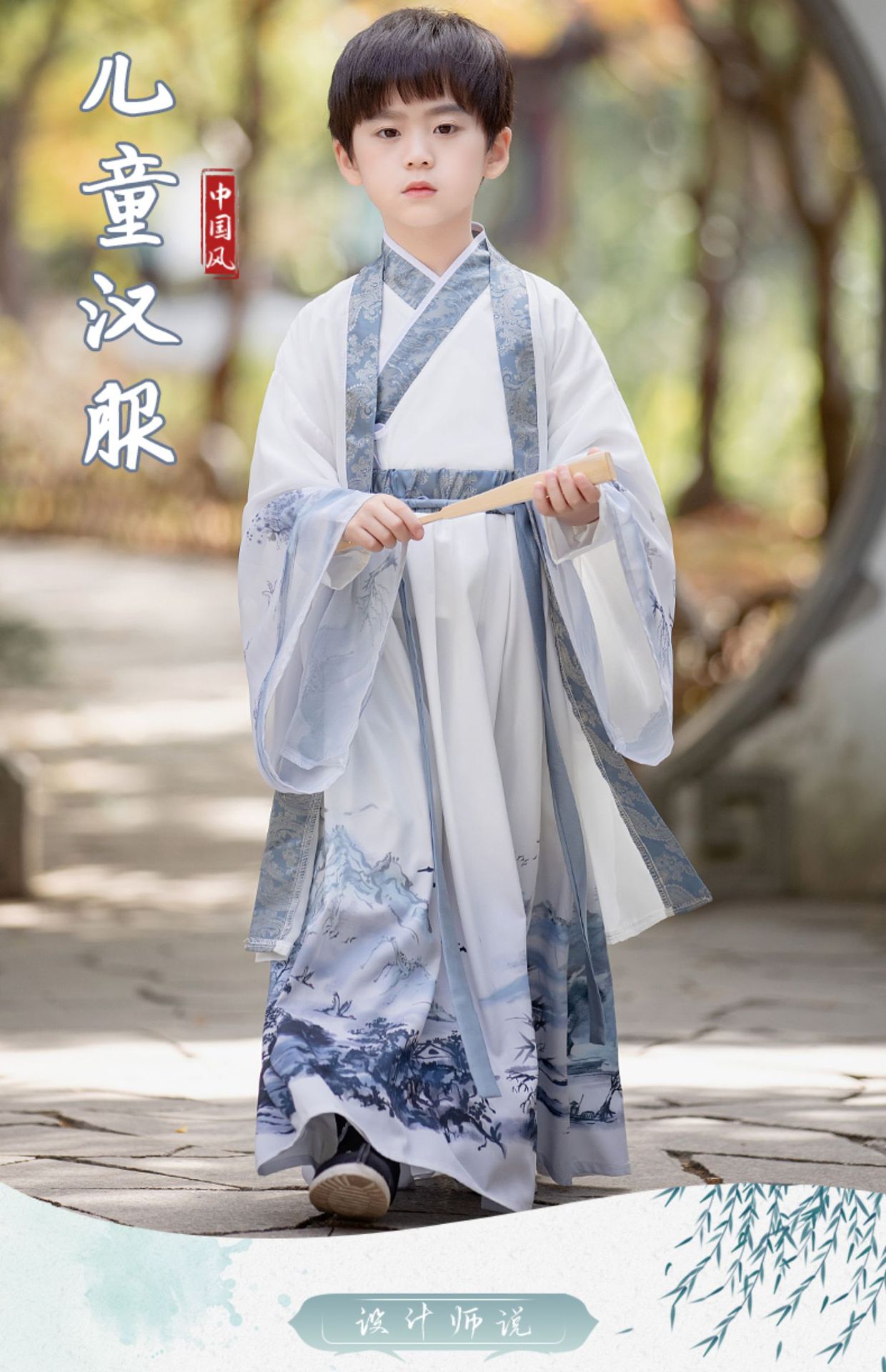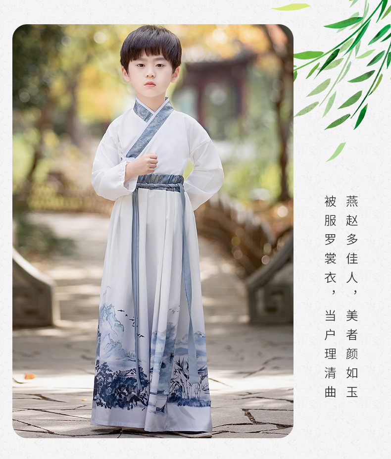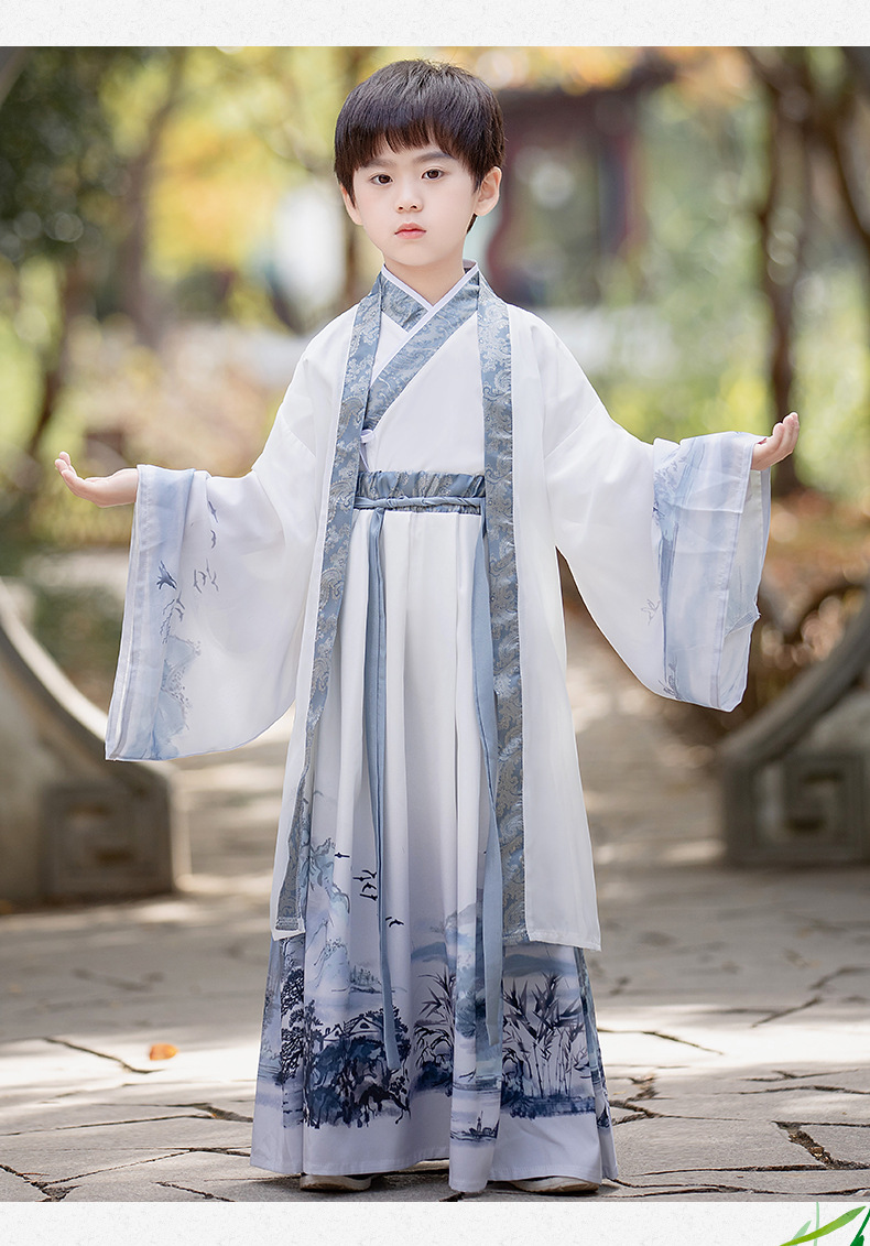 Детский древний костюм Hanfu Guoxue Костюм для мальчиков и девочек Книга Дети Учащиеся начальной школы Guoxue Костюм для написания церемонии чтения Performance Костюм