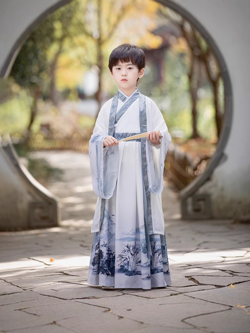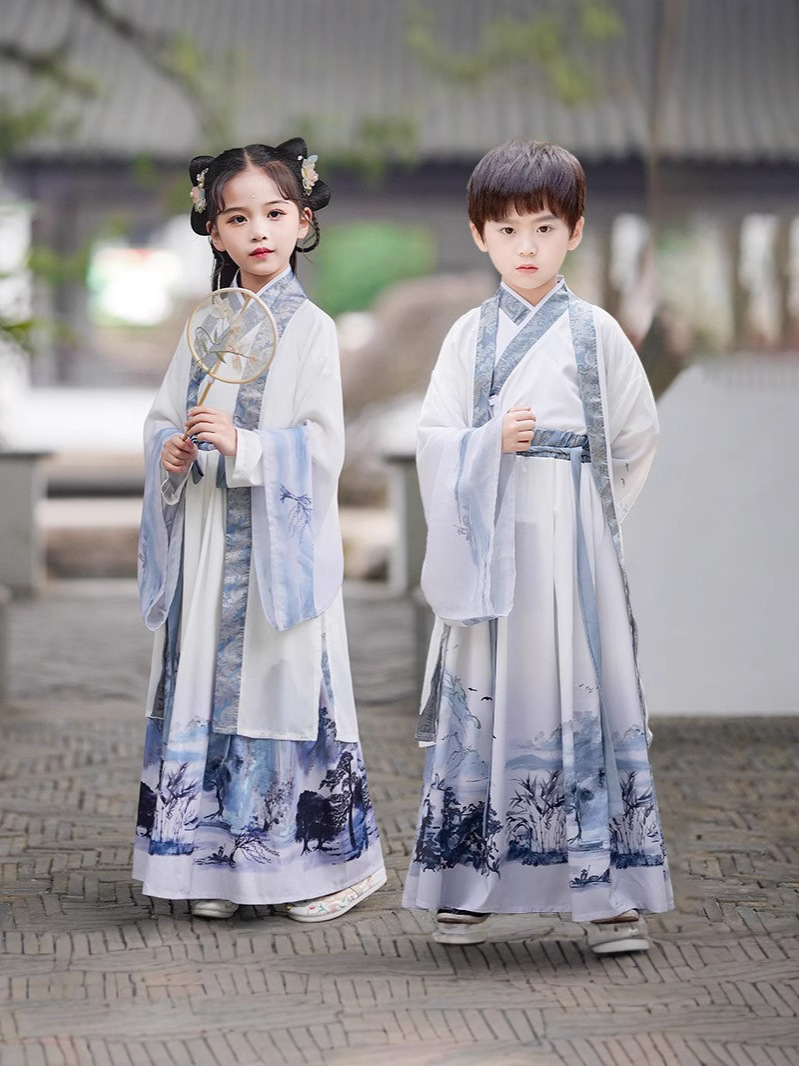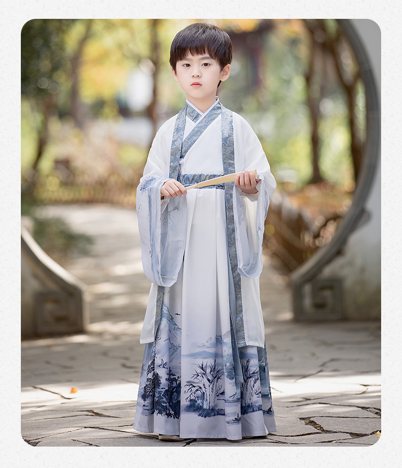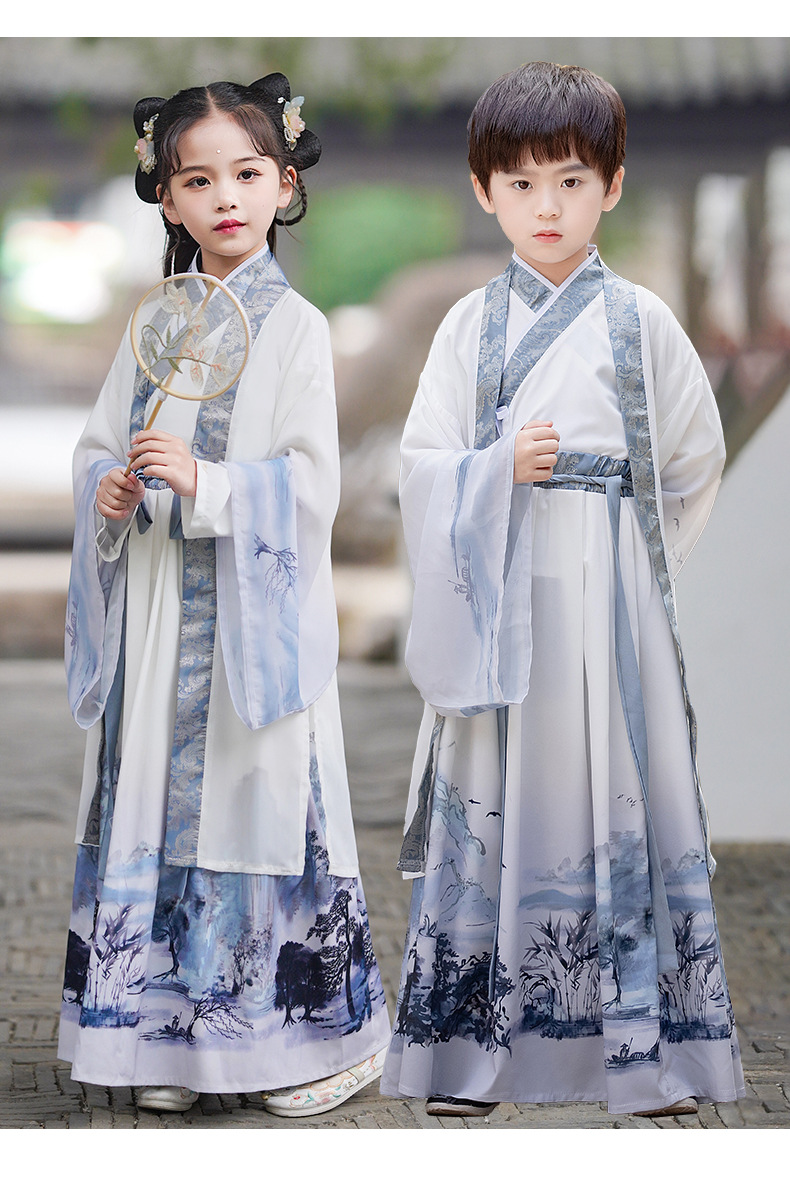 Детский древний костюм Hanfu Guoxue Костюм для мальчиков и девочек Книга Дети Учащиеся начальной школы Guoxue Костюм для написания церемонии чтения Performance Костюм