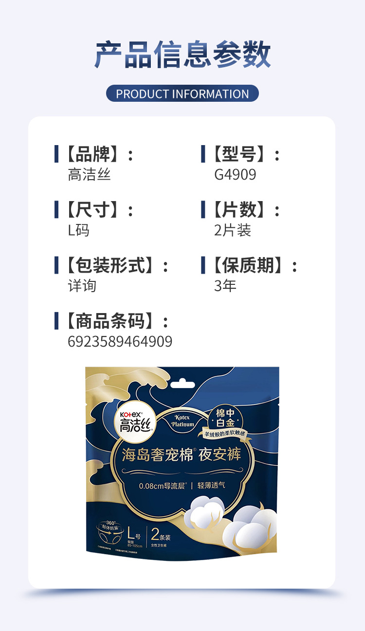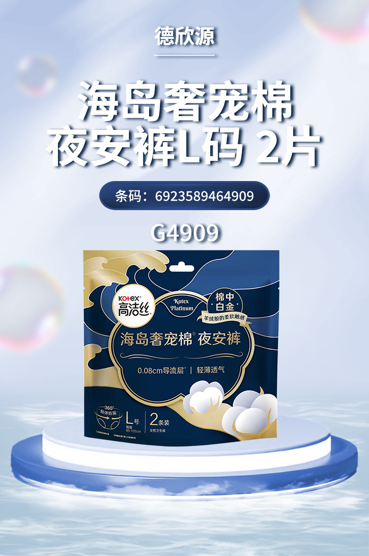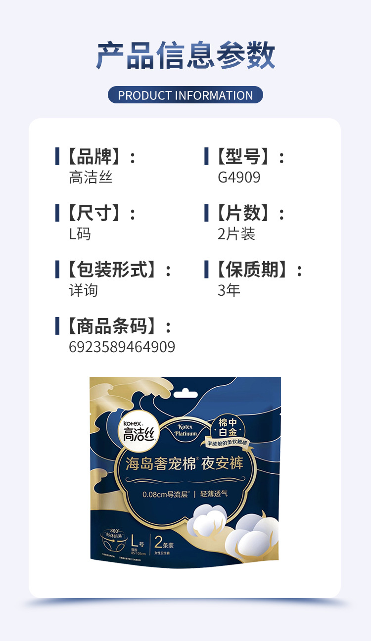 Оптовая продажа Kotex Night Pants Island Luxury Pet Хлопковые мягкие безопасные брюки Гигиенические брюки для ночного использования Тонкие L Размер 2 пары G4909