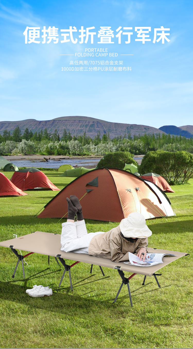Пьемонтная походная кровать Раскладная кровать Путешествия Кемпинг Односпальная раскладная кровать из алюминиевого сплава Портативная уличная походная кровать