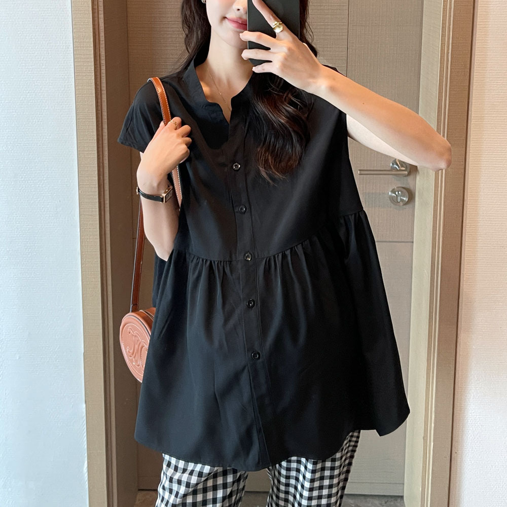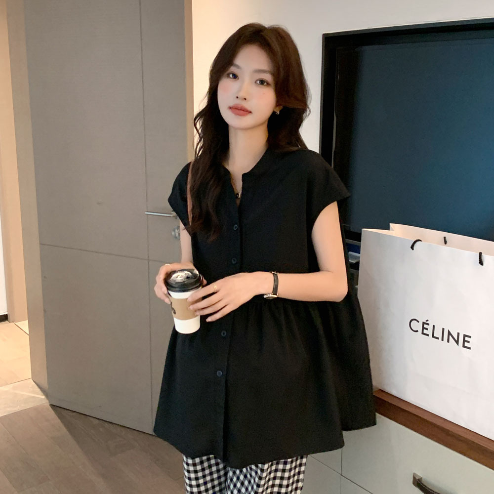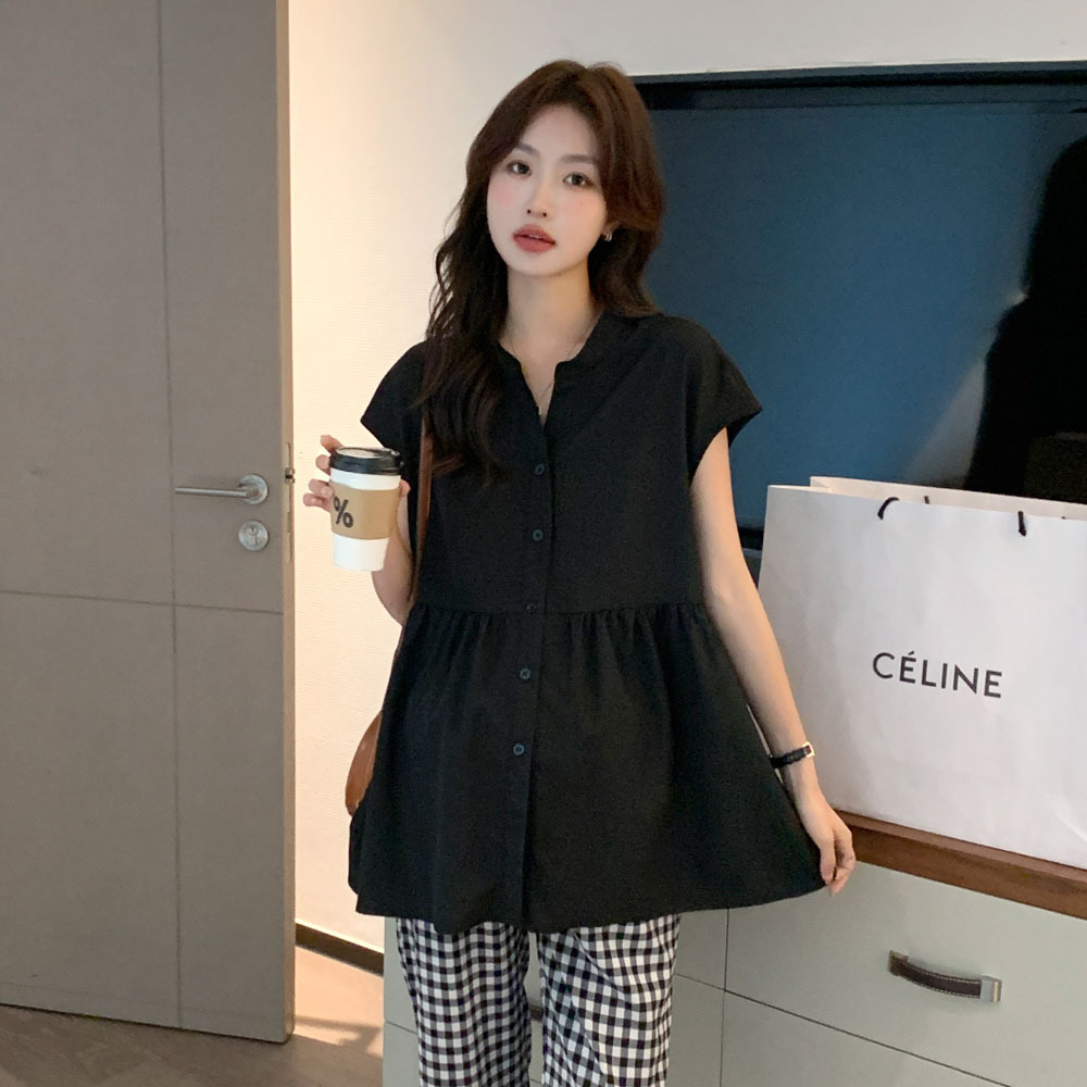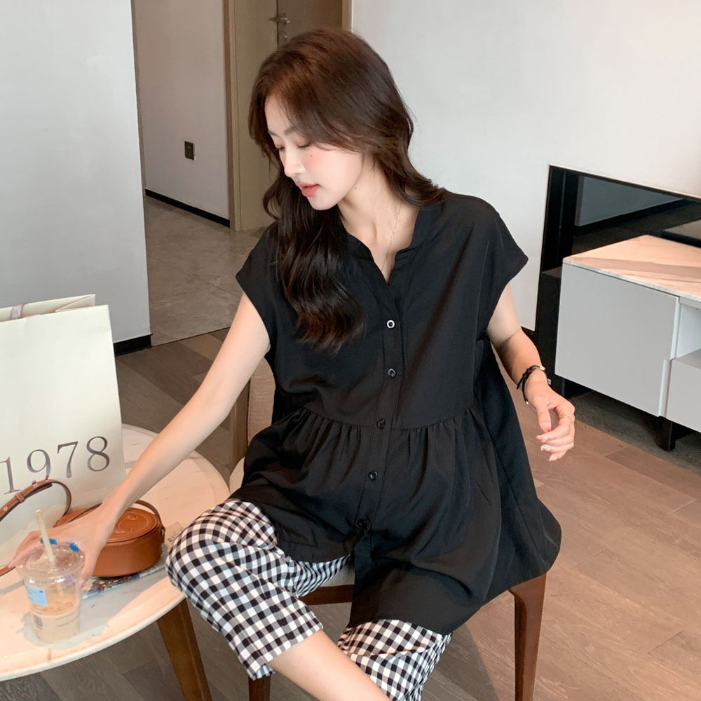 Новые летние платья материнства в западном стиле модные небольшие V-образным вырезом без рукавов рубашки Свободные корейские повседневные Модные мамы сплошной цвет рубашки