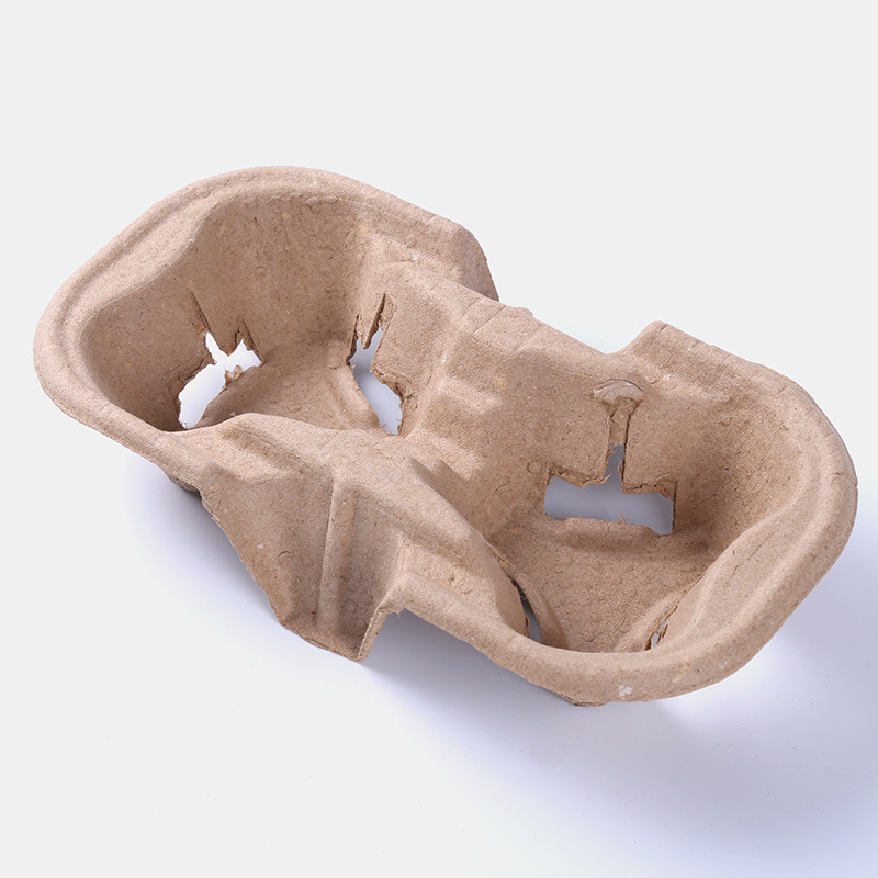 Заводская прямая поставка подставки для бумажных стаканчиков, подставка для кофейных стаканчиков на 2 стакана, формованный из переработанной желтой целлюлозы