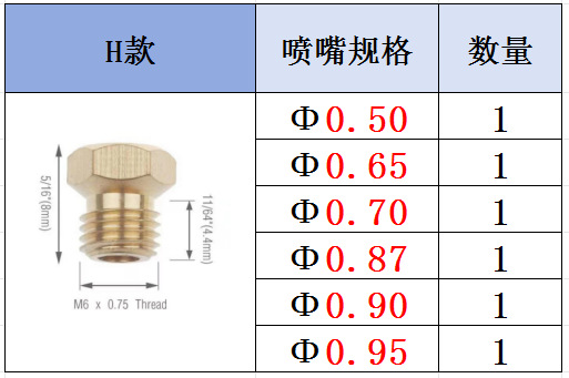 喷嘴(H款)0.5+0.65+0.7+0.87+0.9+0.95
