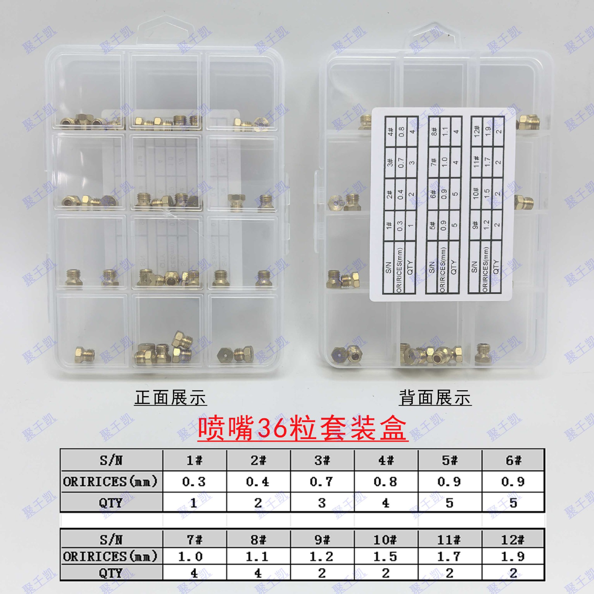 Насадки (36 шт.); Насадка (в коробке); 1 насадка; Медное сопло 0,5 отверстия; Тип сопла А; Тип сопла B; Тип сопла C; Сопло типа D; Сопло типа E; Насадка типа F; Насадка типа G; Сопло типа H; Тип сопла I; Сопло типа J; медное сопло; Медное сопло 0,8*20; Медное сопло 0,85*10