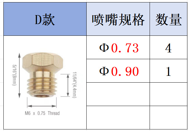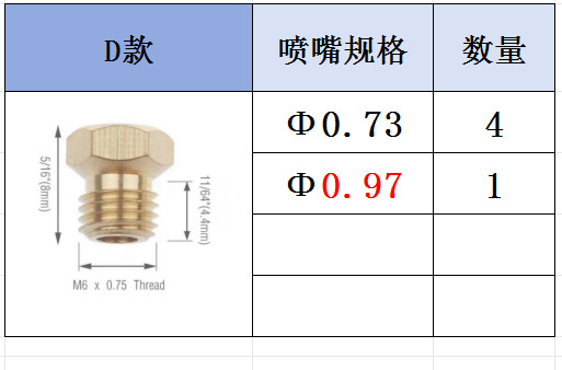 喷嘴(E款)0.73+0.97*2+1.15*2