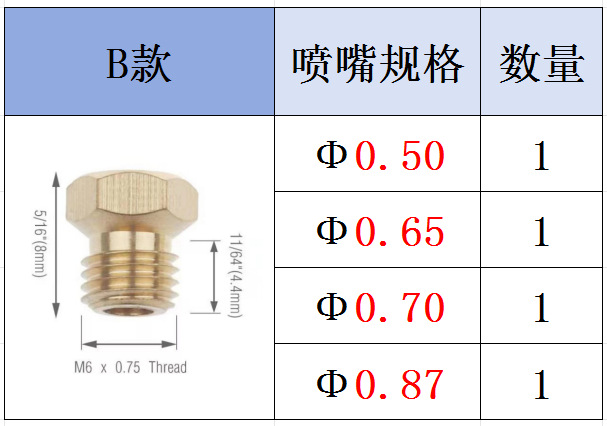 喷嘴(B款)0.5+0.65+0.7+0.87