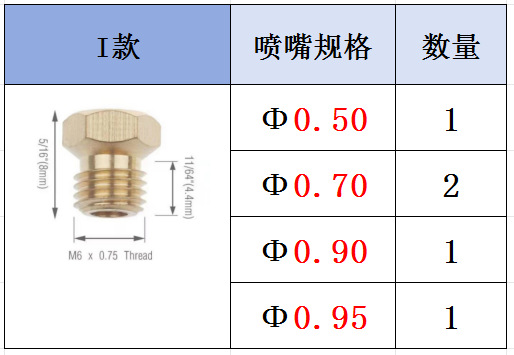 喷嘴(I款)0.5+0.7*2+0.9+0.95